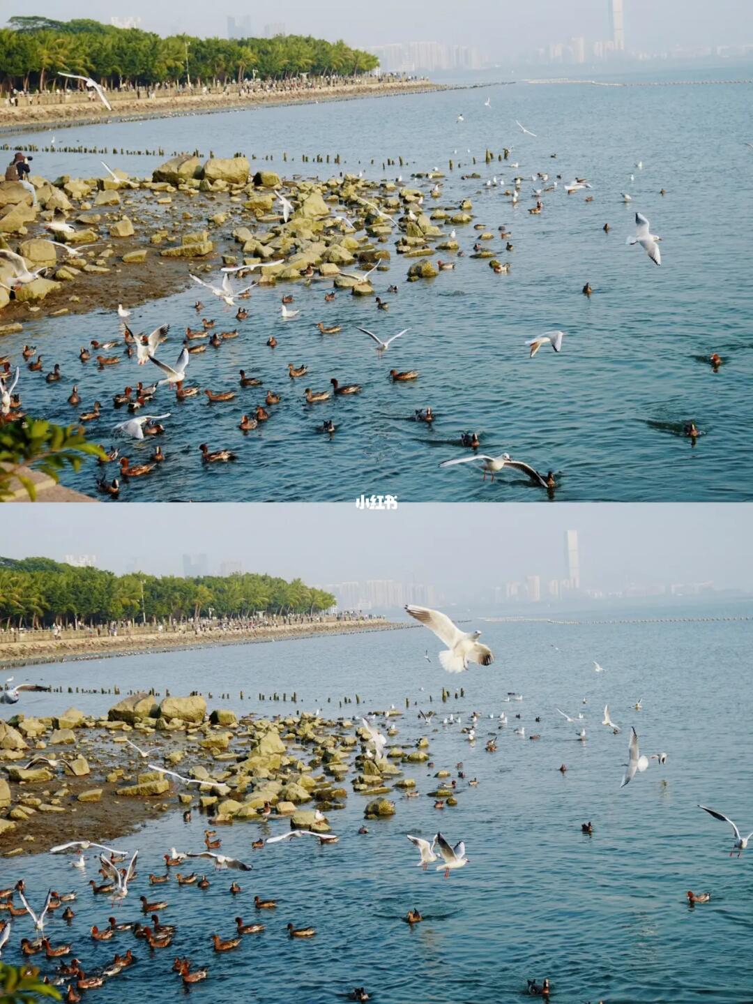 不用去大理!在东莞周边1h就能看到西伯利亚飞回来的海鸥,能近距离与海鸥来一次亲密合影。