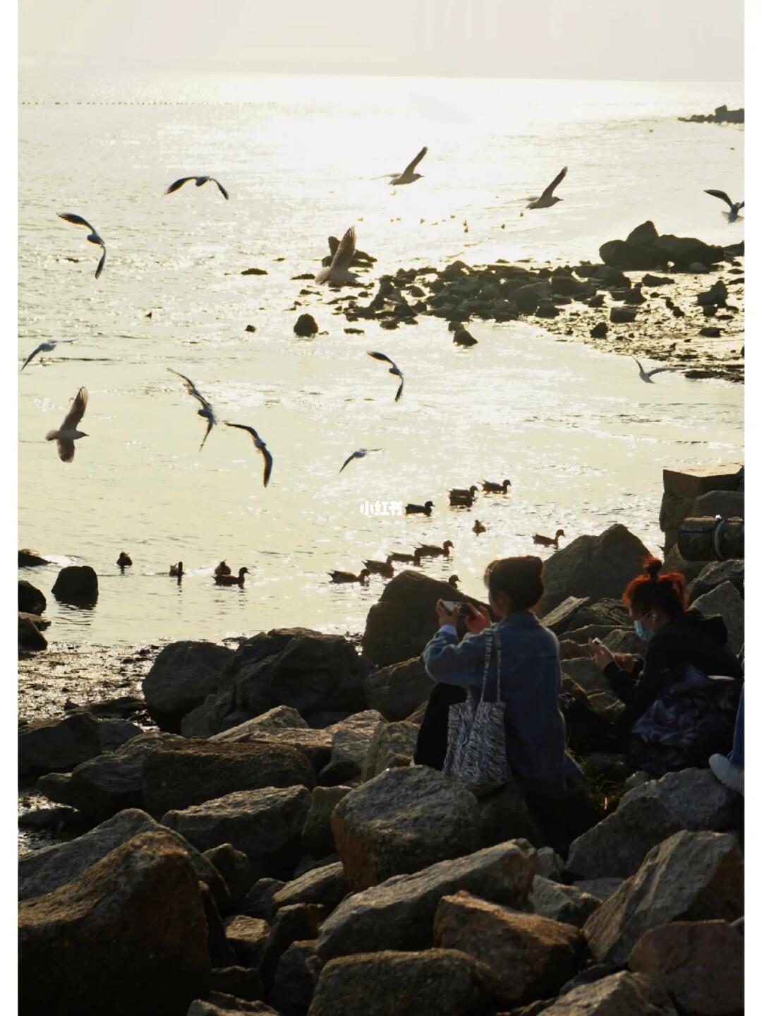 在地铁 D2出口右手边100米就是,停车可以选择4号停车场比较近。如果这里人太多可以往前面500米那里也有一些海鸥,可以下到礁石上与海鸥更近。