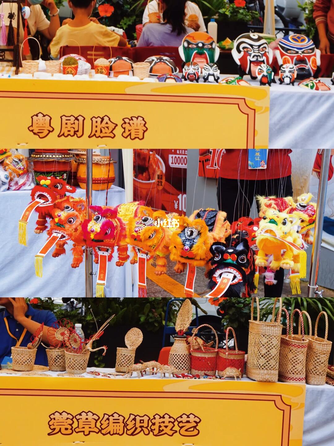 ✅除了巡游表演,我还特别喜欢粤港澳非遗墟市。各种非遗文化遗产的展品,像粤剧面具、莞草编织、 石龙醒狮头等等!好精致又很有年代感。