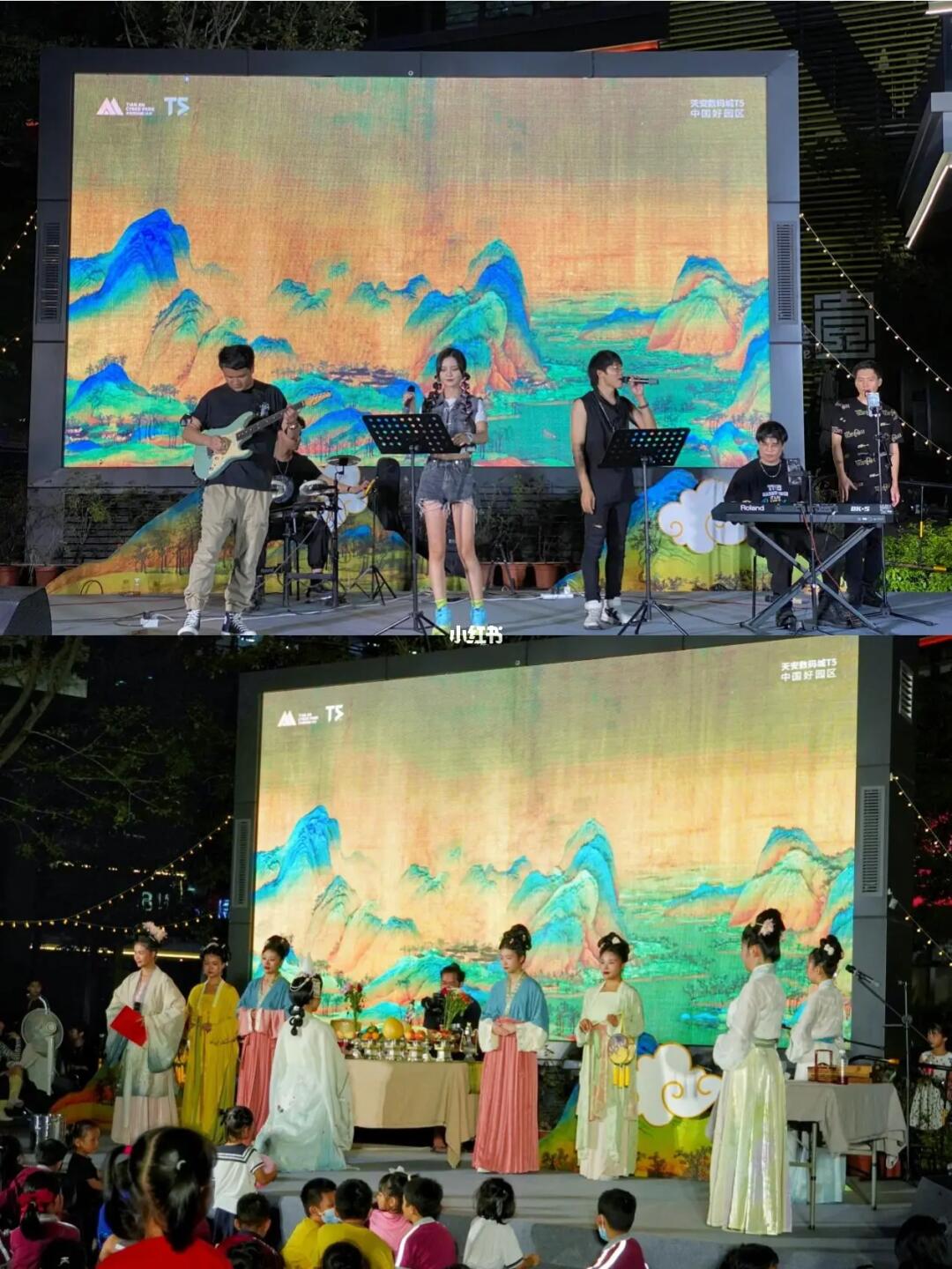 ✅是在凤岗天安数码城举办的音乐节,在大草坪上有露天电影、汉服表演、音乐party、国风市集等等,现场是非常热闹。