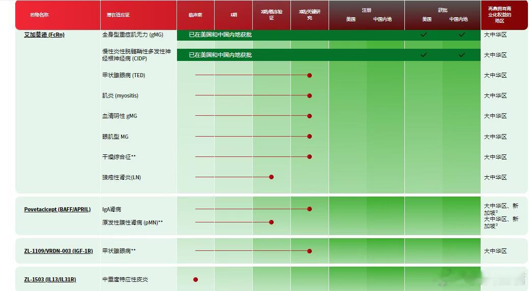 同时,再鼎仍然在拓宽自免产品线。今年1月10日,再鼎医药从福泰制药手里引进了一款BAFF/APRIL双重拮抗剂Povetacicept,瞄准的是IgA肾病领域。此外,再鼎医药还自研一款IL-13/IL-31R双抗ZL-1503,处于临床前阶段,瞄准的是中重度特应性皮炎。
