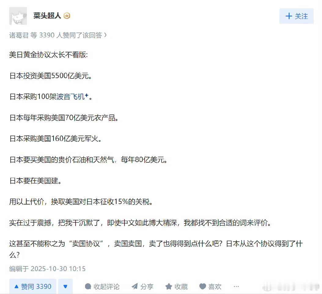 搞事女把谄媚演绎的淋漓尽致!参与谈判的日本政客紧锁眉头,只有她暗送秋波,石破茂死活都不签的黄金协议,她签了!这黄金协议不是简简单单的不平等条约,简直就是卖身契。 没办法这就是奴才的命,这就是美国驻军的优越感,这是让美国男人自信心爆棚的筹码。