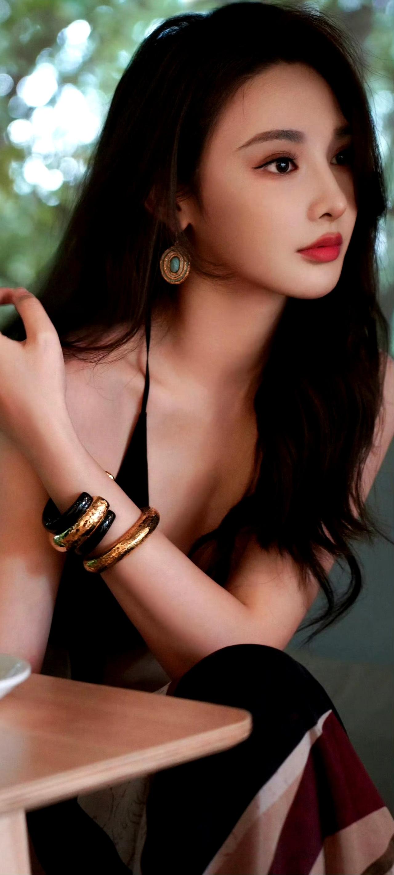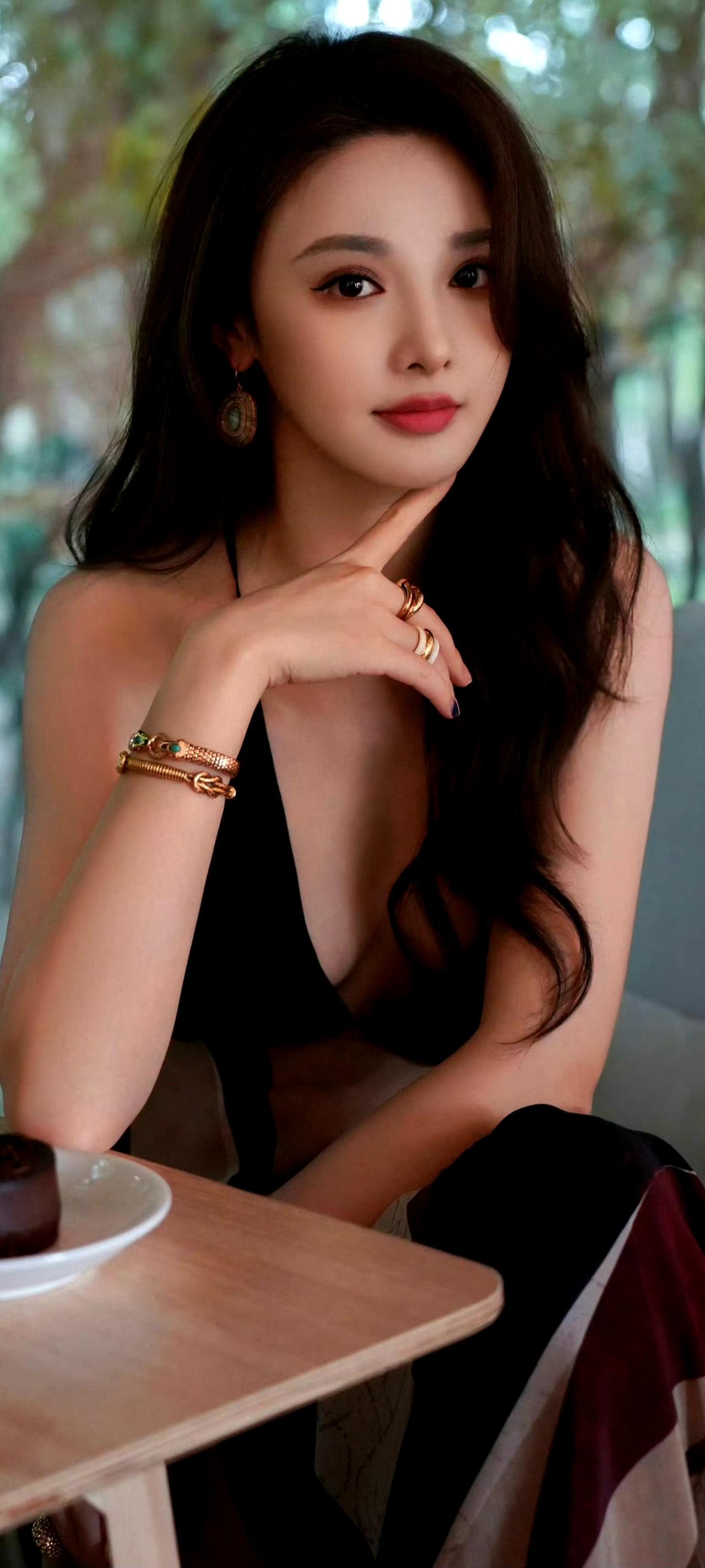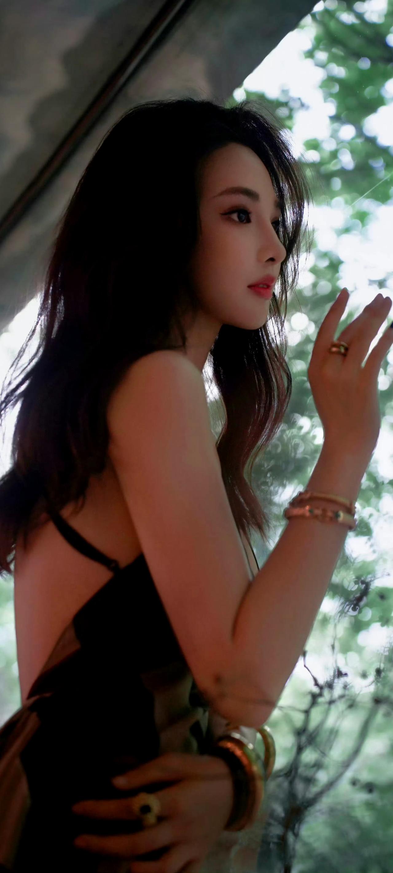 优雅黑裙,红唇魅惑,森林中的神秘女神。彭小苒 明星穿什么 好身材性感女神 你心目中的女神有哪些 气质女明星