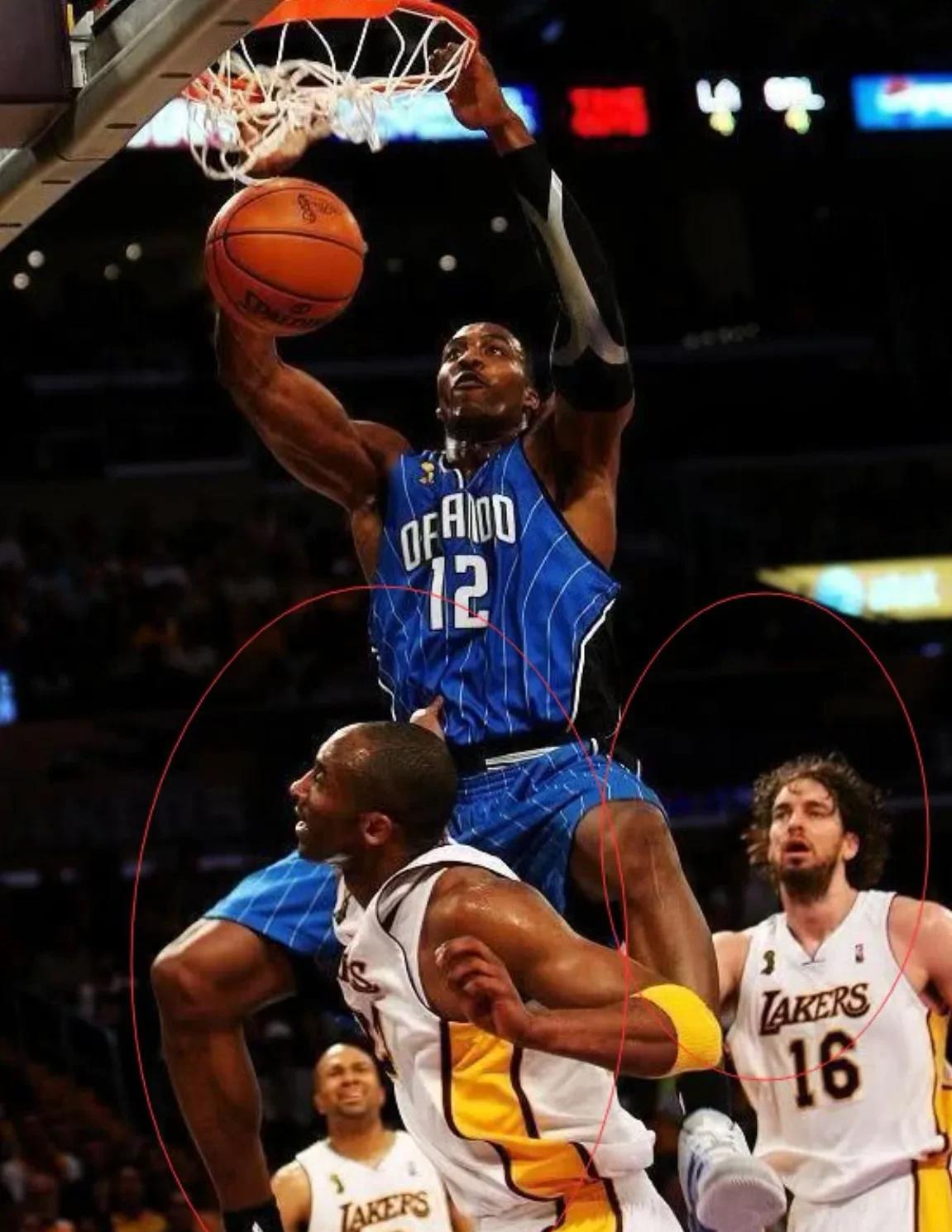 俱往矣!霍华德当年晒图骑扣科比,问题是图一科比背朝你,侧向你,从右手手臂角度看,且离你二里地,错位才有这效果。而图二科比正面骑扣到你后仰,正上骑正下,小科比都顶到下巴上了,能同日而语嘛?!