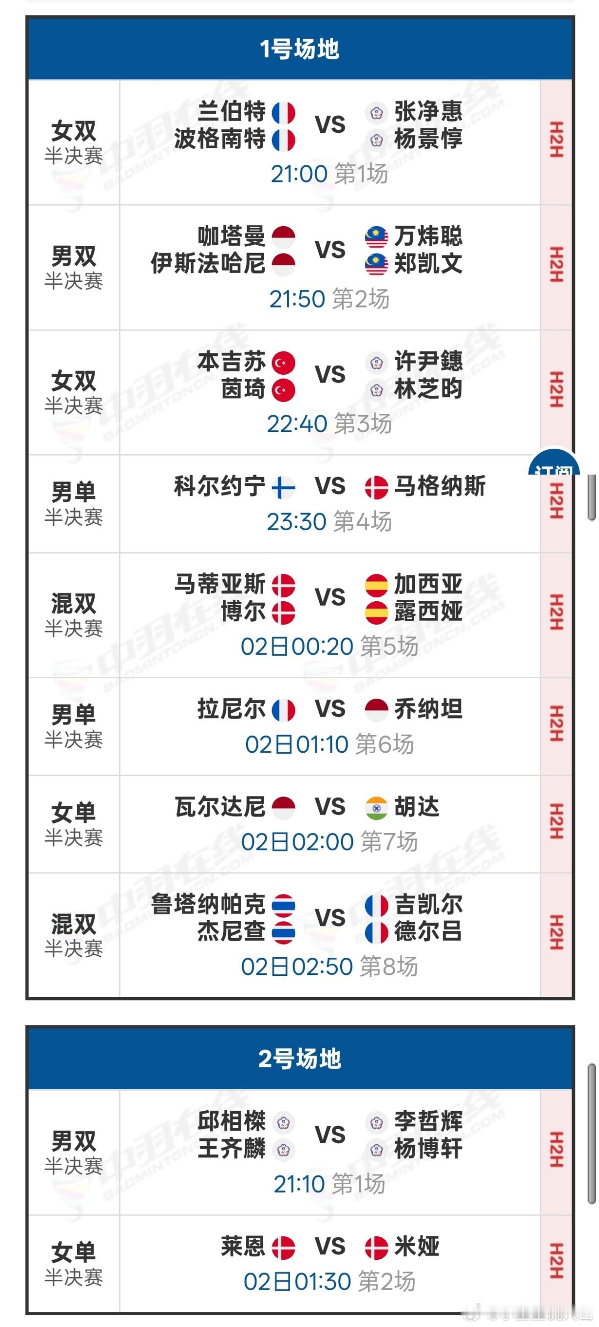 2025年海露羽毛球公开赛11月1日各单项半决赛赛程,晚上21点开赛: