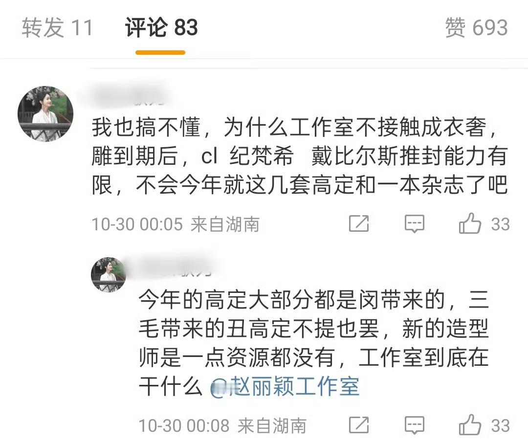 丽粉在工作室下面维权,无高奢成衣,推封有限,活动无高定,感觉丽会是第一个退休…