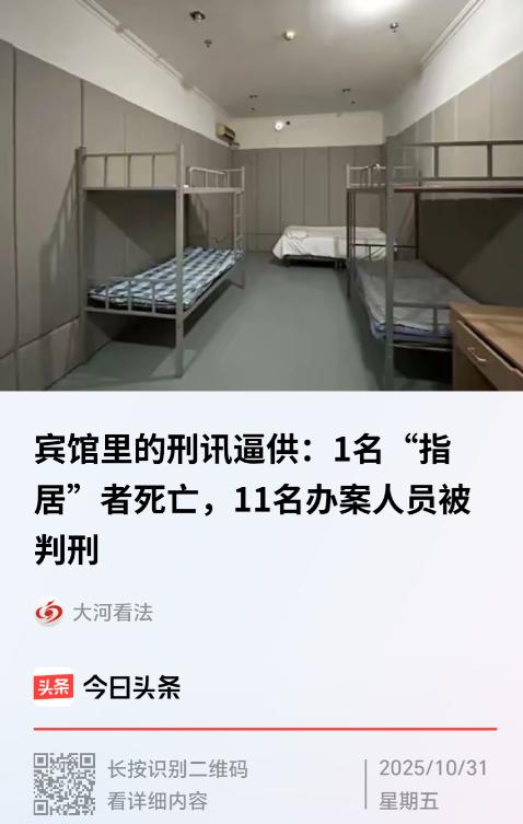 10月31日,河北高邑,一33岁男子在凌晨四点的家中被警方带走,临行前对妻子那句“照顾好孩子”成了永诀。他与父亲、叔叔等共10人,被关进宾馆,没想到,办案人员以“指居”之名将男子与其父亲、叔叔等共10人关进宾馆,作为私设的“法外之地”,通过电击、殴打、吊铁笼等残酷刑 讯手段,进行逼 供。最终,男子因遭受长时间刑讯,身体机能崩溃,经抢救无效死亡。事后,11名办案人员站上被告席,法院这样判了!   2025 年深秋,河北高邑的街头已带了些凉意,但对于李婷(化名)来说,心里的寒意却早已浸透了数年。她永远记得 2023 年那个凌晨四点,丈夫王强(化名)被警方从家中带走时,那句隔着门缝传来的 “照顾好孩子”,没想到竟成了两人的永诀。   王强 33 岁,是个性格憨厚的普通男人,平日里靠做点小生意维持家用,和妻子李婷育有一个刚上小学的孩子。事发当天凌晨,睡梦中的他被急促的敲门声惊醒,几名身着制服的办案人员出示证件后,便以配合调查为由将他带走。   李婷抱着惺忪的孩子追到门口,只听到丈夫那句带着担忧的嘱托,身影就消失在茫茫夜色里。她以为这只是一次普通的问询,却没料到,这一分别竟是生死相隔!   王强被带走后,李婷的生活陷入了漫长的等待。她每天守着手机,盼着丈夫的消息,可等来的却是石沉大海的寂静。   直到几周后,她才得知,丈夫和他的父亲、叔叔等一共 10 人,被办案人员以指定居所监视居住的名义,关进了当地一家被私自改造的宾馆里。这家看似普通的宾馆,此刻却成了 “法外之地”。   据后来的案件披露,这个所谓的场所,被办案人员打造成了一个残酷的刑讯密室。房间里摆放着几张简陋的铁架床,墙面被刻意做了软包,角落里还藏着电击器、铁棍等刑具。   王强和其他 9 名被关押者,在这里遭遇了难以想象的折磨。办案人员为了逼他们承认莫须有的罪名,用尽了手段:电击身体敏感部位、用铁棍殴打四肢和躯干、甚至把人吊进特制的铁笼里长时间折磨。   王强的父亲是个老实巴交的农民,哪里经受过这种酷刑,没几天就被打得遍体鳞伤,而王强因为性格执拗,不肯屈打成招,遭受的折磨更是变本加厉。   长时间的刑讯让王强的身体迅速垮掉。他开始出现呕吐、昏迷的症状,可办案人员对此置若罔闻,依旧变着法儿地逼供。直到王强彻底失去意识,他们才慌乱地将他送往医院,但一切都晚了。   医院的诊断显示,王强因多器官功能衰竭、身体大面积软组织损伤,经抢救无效死亡。一条鲜活的生命,就这样在 “宾馆刑讯室” 里消逝了。   王强的死讯传来,李婷感觉整个世界都崩塌了。她不相信那个临走前还叮嘱她照顾好孩子的丈夫,会以这样惨烈的方式离开。悲愤交加的她,和其他受害者家属一起,不断向上申诉。终于,在舆论和法律的推动下,这起发生在宾馆里的刑讯逼供案被彻底揭开。   2025 年 10 月,案件迎来了一审判决。11 名涉案的办案人员站上了被告席,其中主导者张旭光因犯故意伤害罪、刑讯逼供罪,数罪并罚被判处有期徒刑十六年;其余 10 名办案人员也分别被判处不同刑期。消息传出,在网络上引发了轩然大波。   有网友在评论区愤怒地说:“把宾馆当刑讯场,把‘指居’变成‘法外之地’,这些人的良心不会痛吗?一条人命就这么没了,十六年太少了!”   也有网友感慨:“那句照顾好孩子太戳心了,普通人的维权路怎么就这么难?”   还有人关注到 “指定居所监视居住” 的制度漏洞,呼吁加强监管:“‘指居’是为了办案需要,不是让他们用来刑讯逼供的,制度的笼子必须扎紧!”   如今,案件虽然有了一审结果,但包括张旭光在内的 10 名被告人已提起上诉,后续的司法程序仍在继续。李婷带着孩子,一边等待着最终的判决,一边努力把孩子抚养长大。她时常会拿出丈夫的照片,给孩子讲爸爸的故事。   对此你怎么看?欢迎大家在评论区留言讨论。   信源:闪电新闻
