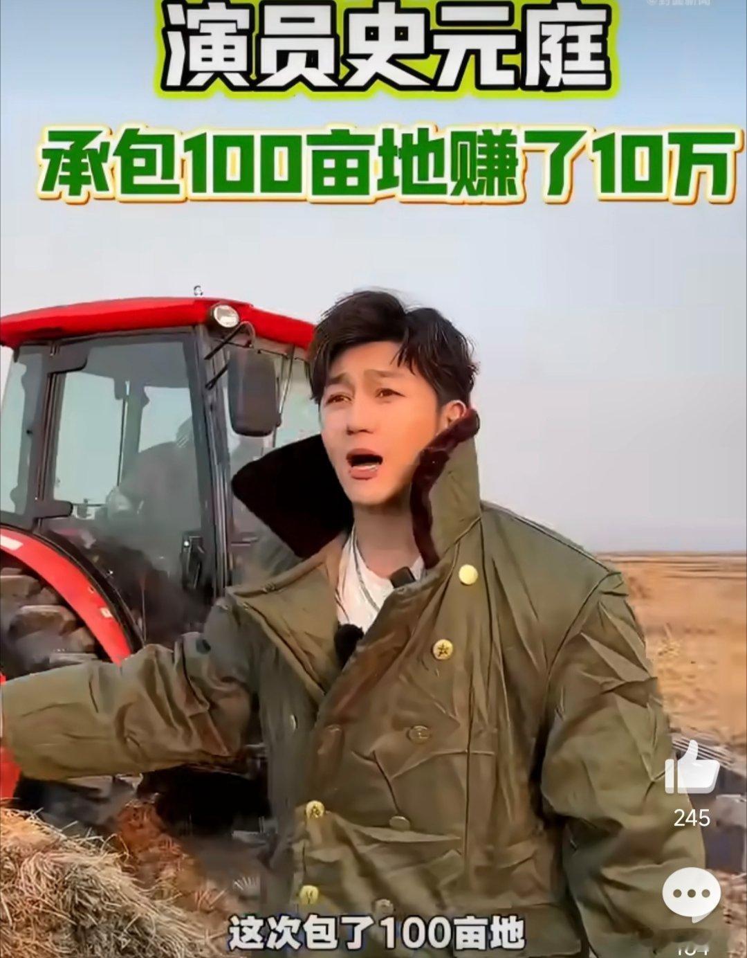 演员史元庭承包100亩地赚了10万演员史元庭称种地比陪爬泰山赚钱演员史元庭从陪爬泰山到种地丰收,100亩地赚10万还惠及农户,跨界转型太精彩!既守演员初心,又拓生活新路,这波操作实力诠释“人生不设限”!