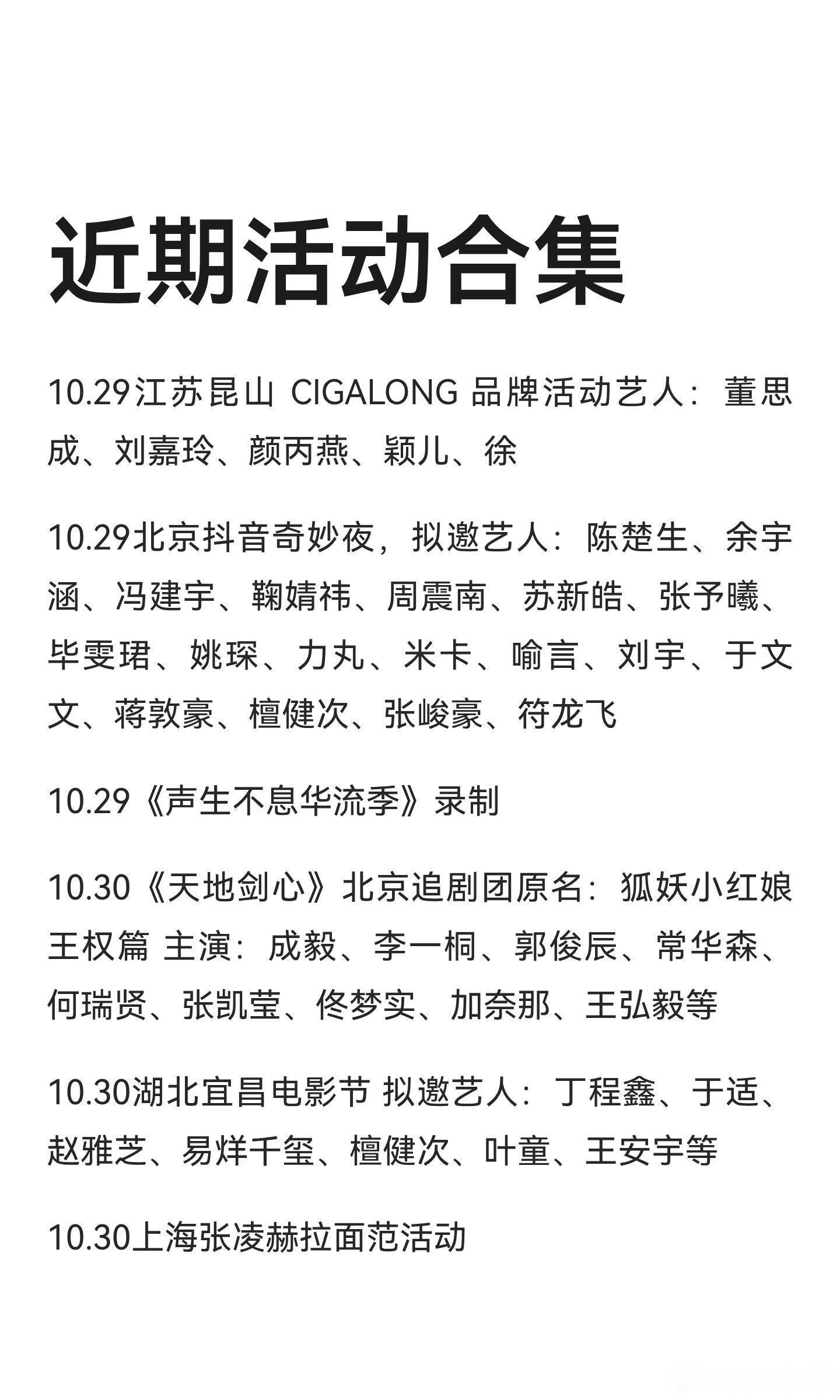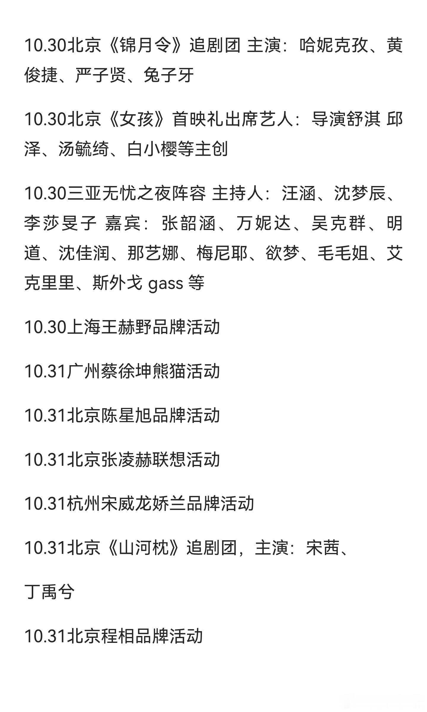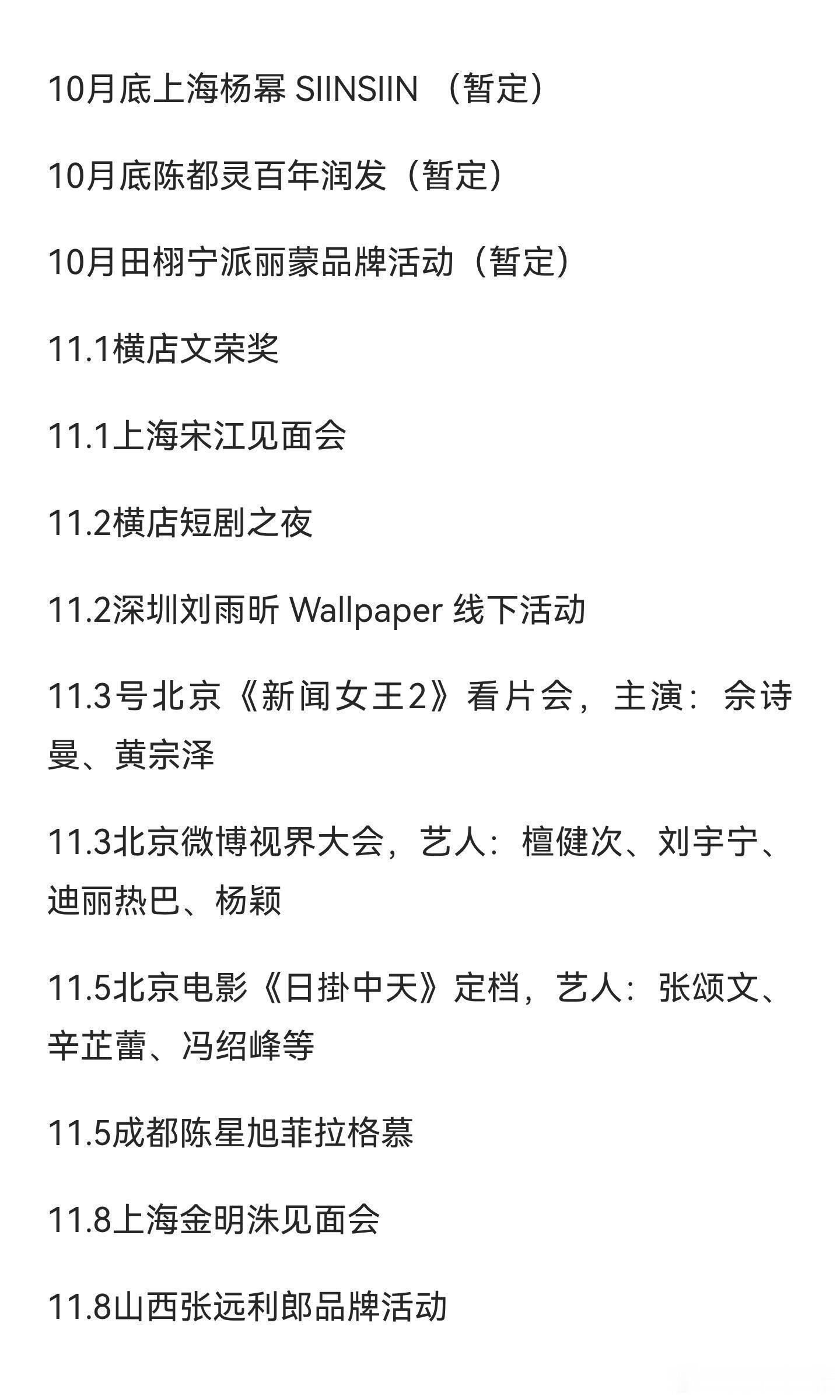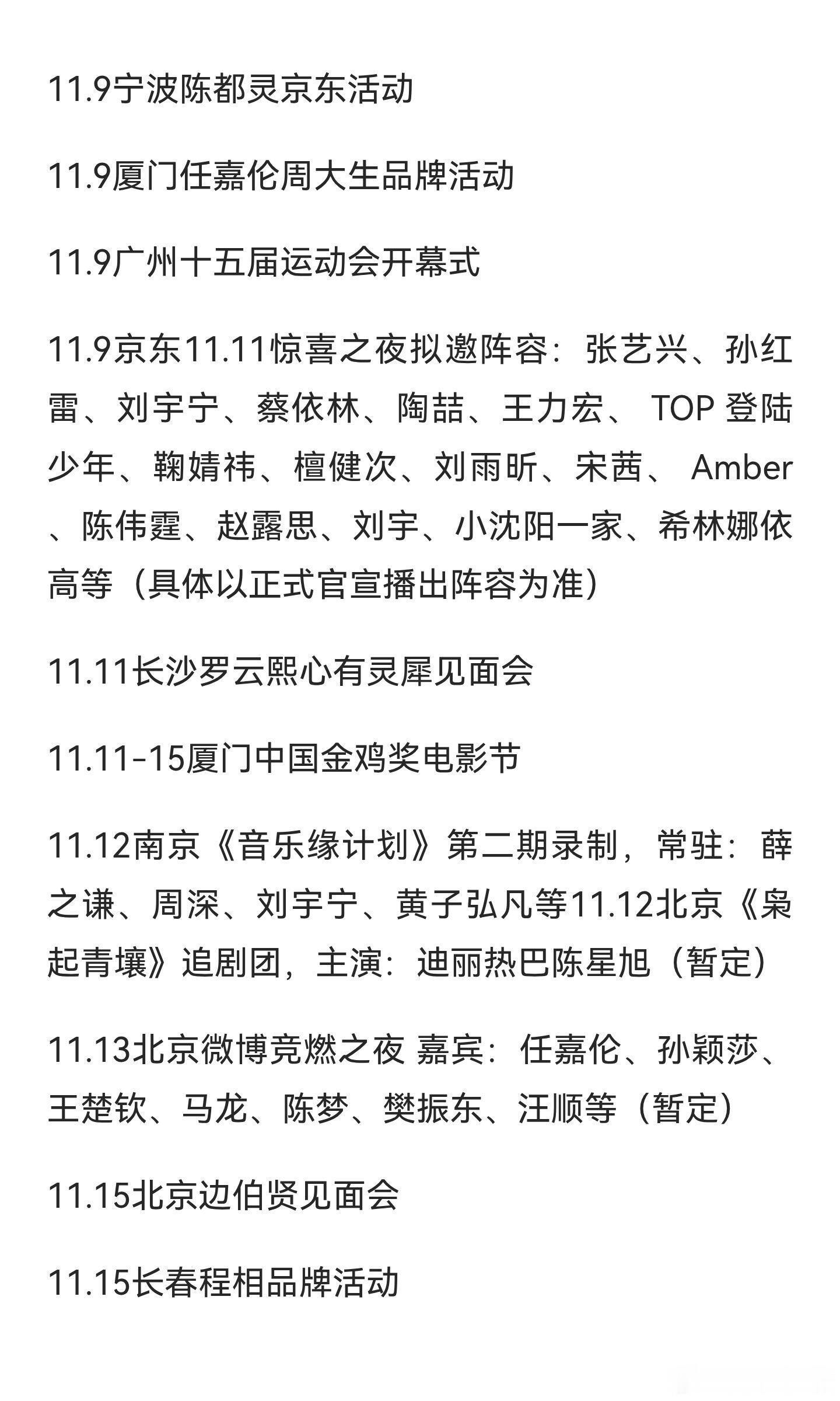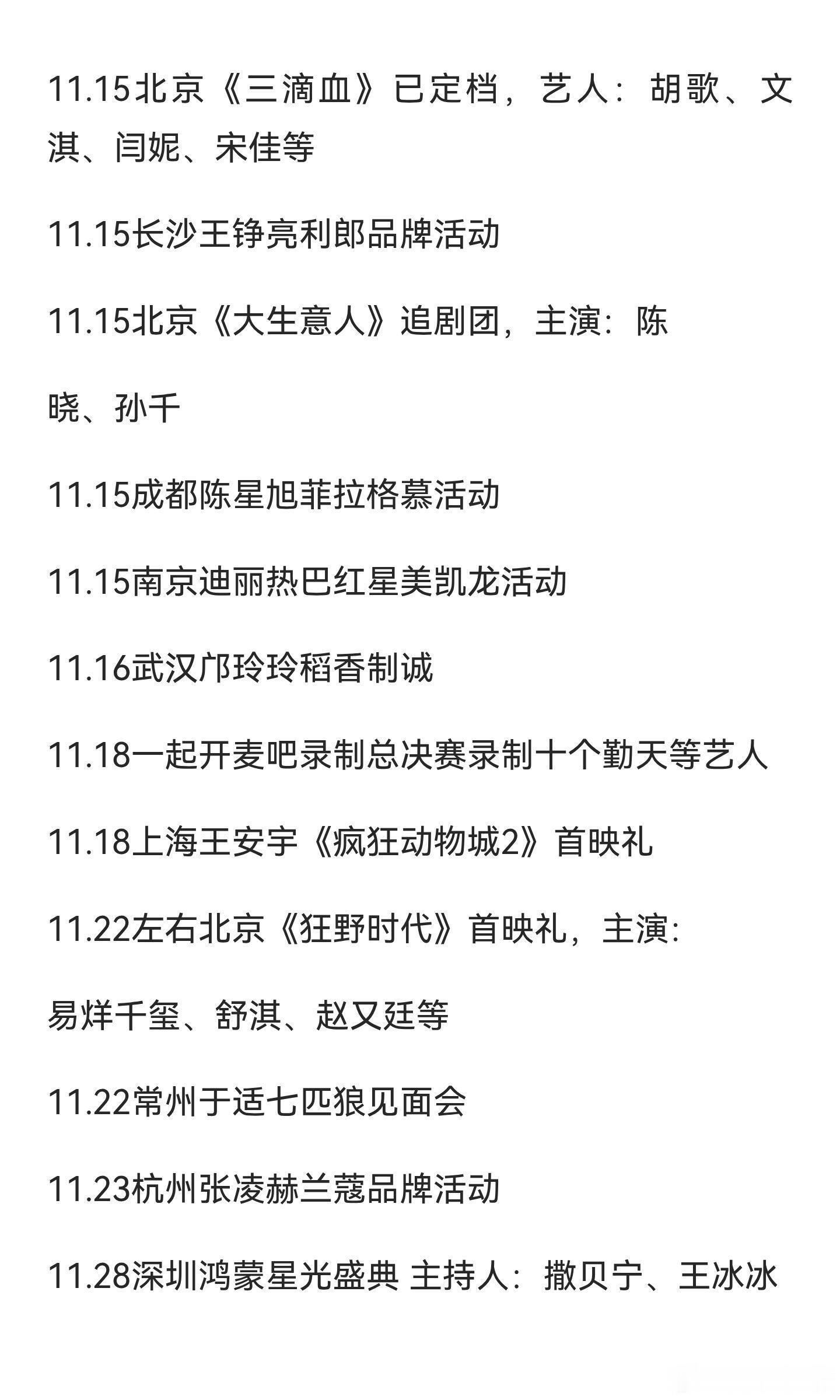 明星十一月行程图第二弹迪丽热巴、唐嫣、许魏洲、谭松韵、张靓颖、王楚然、关晓彤、李