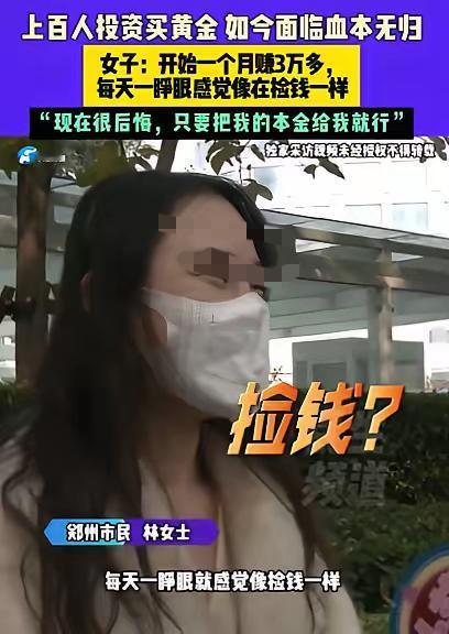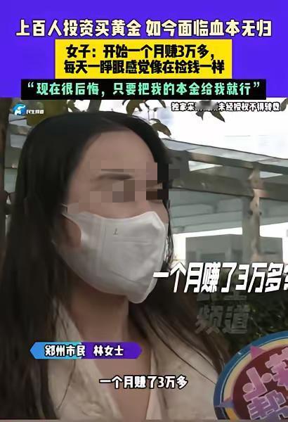 贪心不足蛇吞象!河南一女子为了赚大钱,投资6万买黄金,开始1个月赚3万多,每天都在涨,一睁眼感觉像在捡钱一样,连班都不想上了,可仅仅1个月后,群里发消息说,公司亏损,会在3天内结清,但从此了无音讯!如今面临血本无归,女子很后悔:现在利润不利润都无所谓了,只要把我的本金给我就行! 其实啊,这种事现在挺常见的。好多人都想赚大钱,看到有机会就赶紧冲上去,结果一不小心就掉进陷阱里了。就说这位河南女子吧,她肯定也是觉得自己发现了个好机会,能靠投资黄金发家致富呢。一开始赚了那么多钱,换谁都会开心得不行,觉得这钱来得太容易了,上班多辛苦啊,哪有这个赚钱快。 但她可能没仔细想过,哪有这么好的事啊?投资本来就是有风险的,哪能只赚不赔呢?那些说能稳赚的,十有八九都是有问题的。也许她是被前期的高收益冲昏了头脑,没去好好考察一下这个公司靠不靠谱,也没想想这么高的收益背后是不是有什么陷阱。 而且啊,现在有些不良公司,就是专门用这种手段来骗钱的。先给你点甜头尝尝,让你觉得有利可图,等你把钱都投进去了,他们就找各种理由跑路或者耍赖。这女子也是太轻信了,没有多留个心眼。 我觉得吧,投资还是得谨慎点。不能光看眼前能赚多少,得把风险也考虑进去。要是遇到那种收益高得离谱的,更得小心了,多去了解了解情况,别轻易把自己的血汗钱投进去。不然像这位女子一样,最后血本无归,后悔都来不及。 各位读者你们怎么看?欢迎在评论区讨论。