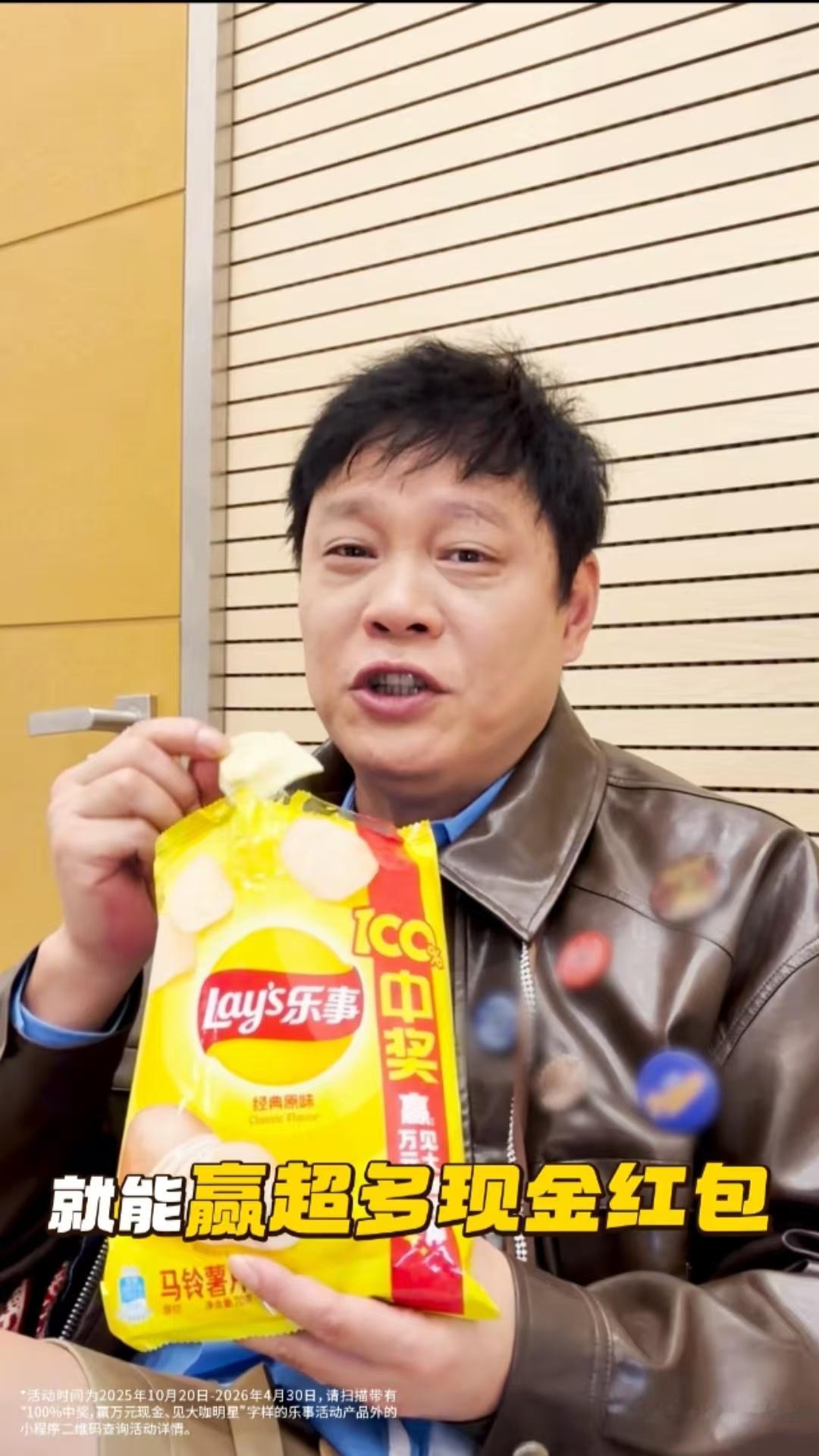 范志毅演我爸爸吃薯片范大将军:“脸都不要了?这福利总得要吧!乐事开袋百分百有奖,扫码就能抢万元现金红包,甚至有机会见明星!一包薯片就能解锁演唱会门票、签名照,这波不亏!赶紧的,扫码就完事了!吃乐事就要享乐事!”