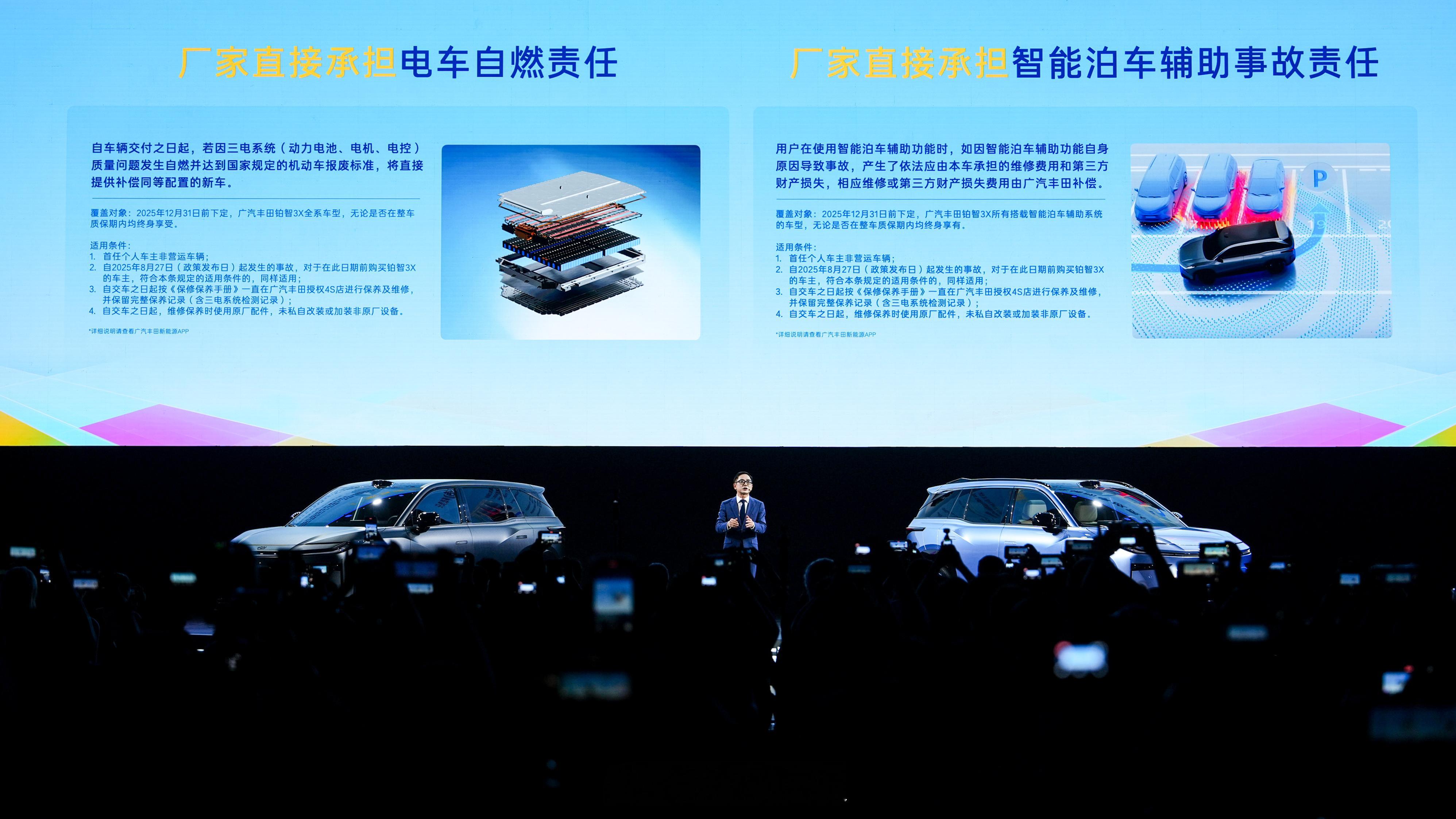 还有个很重大的原因是,之前推出的 “电车自燃与智能泊车辅助事故厂家担责” 政策,直接打消了用户对纯电安全和智驾可靠性的顾虑,希望这功能能普及,而且广丰即将推出电车电池新政策 担责新政持续加码,针对解决电池续航和衰减的疑虑。