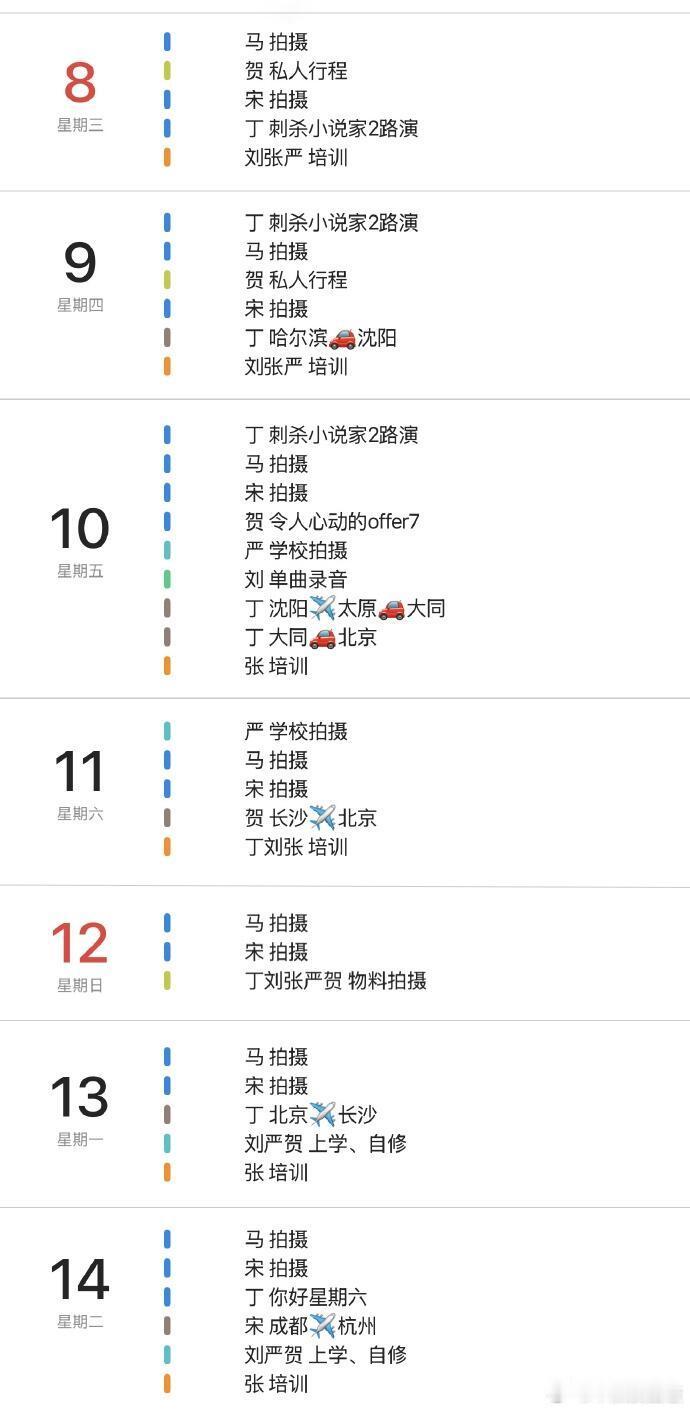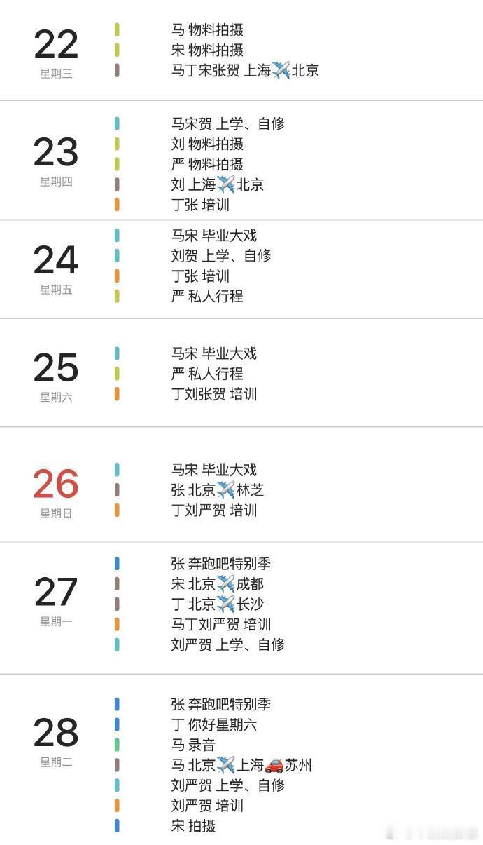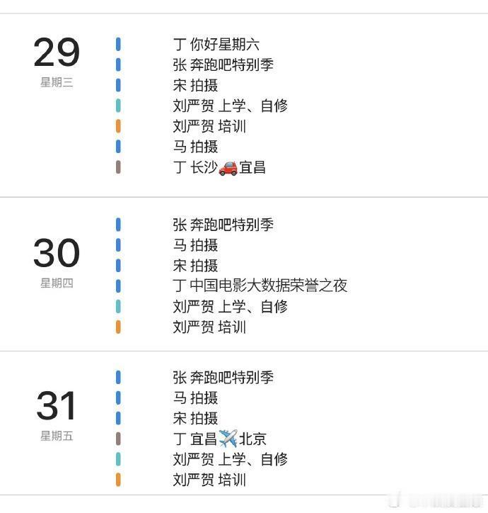 明星十一月行程图第二弹迪丽热巴、唐嫣、许魏洲、谭松韵、张靓颖、王楚然、关晓彤、李
