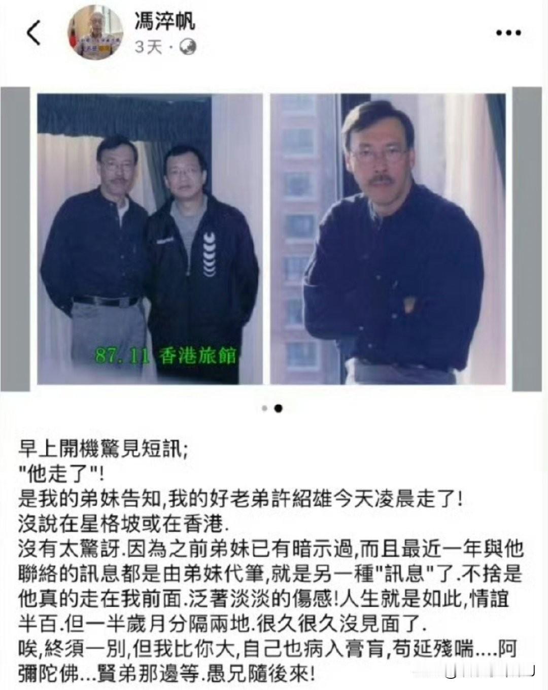 冯淬帆(1945——2025)🕯️ 许绍雄离世那天,你说:终须一别,自己也病入膏肓,苟延残喘… 一路走好🕯️,香港黄金一代越来越少了