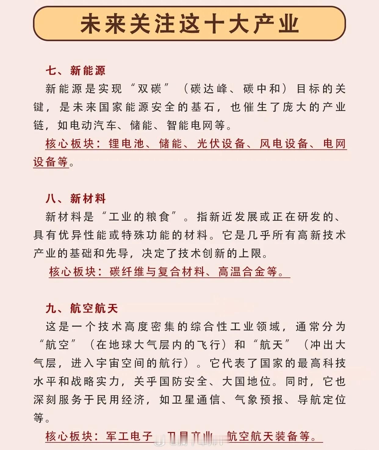 7. 新能源:实现“双碳”目标的关键和国家能源安全的基石,催生了电动汽车、储能、智能电网等庞大产业链。