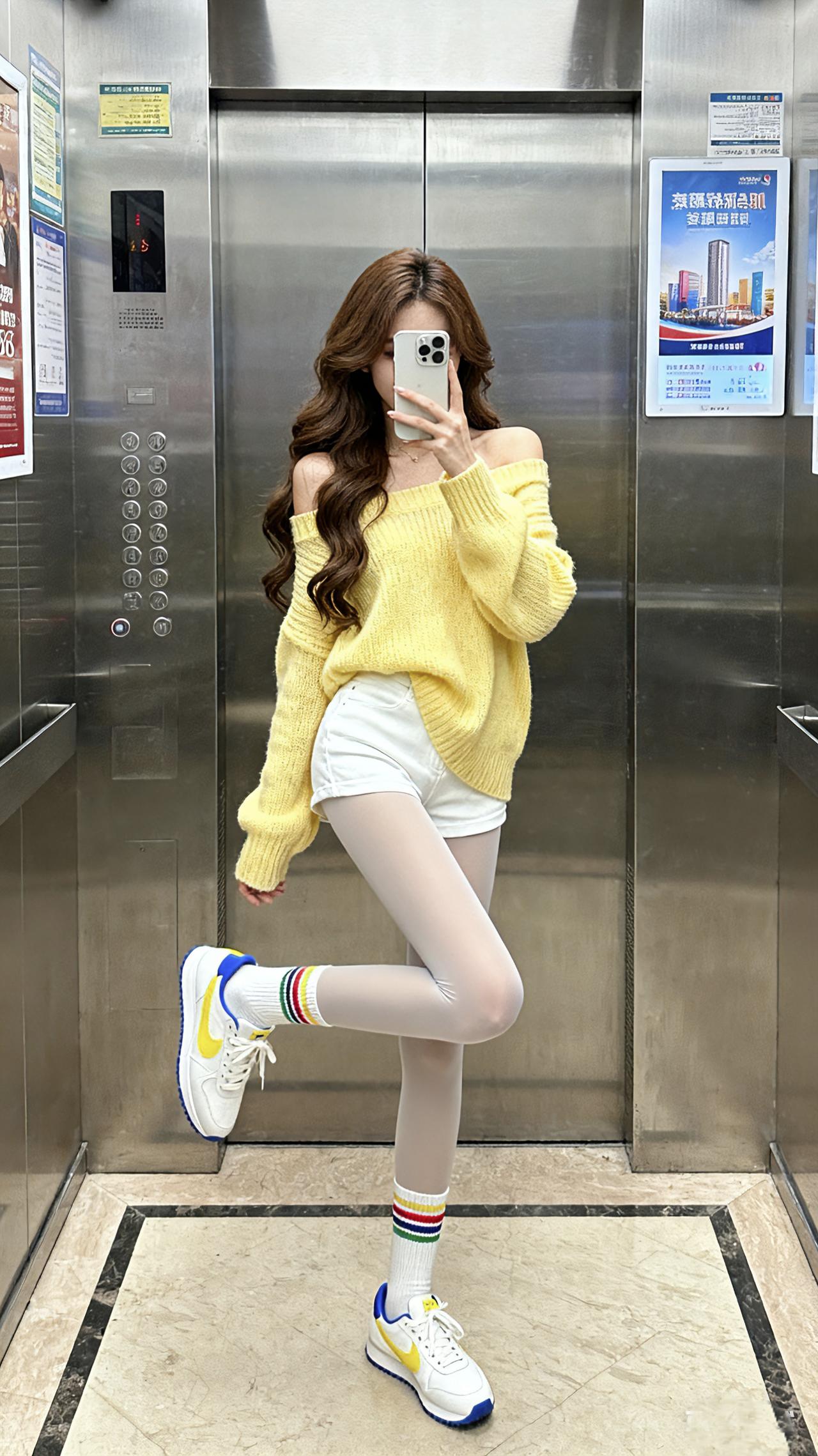 今天不上班。音乐灵感推荐 穿搭分享 拍照姿势 黄色衣服的女孩