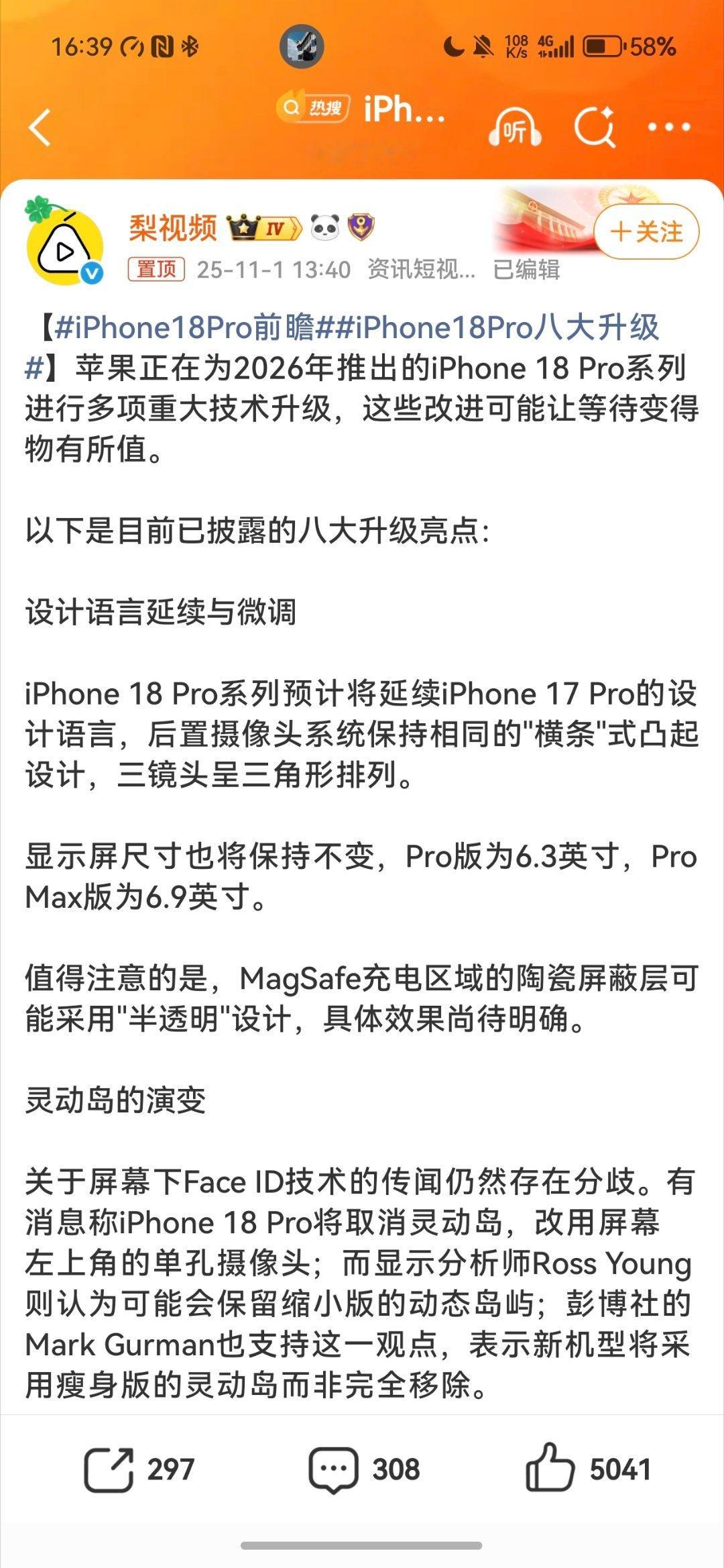 iPhone18Pro前瞻这iPhone17系列刚开售没多久,这个iPhone18的消息就这么多了,看样子升级还挺多啊,是不是没必要买iPhone17了呢。[doge][doge][doge]
