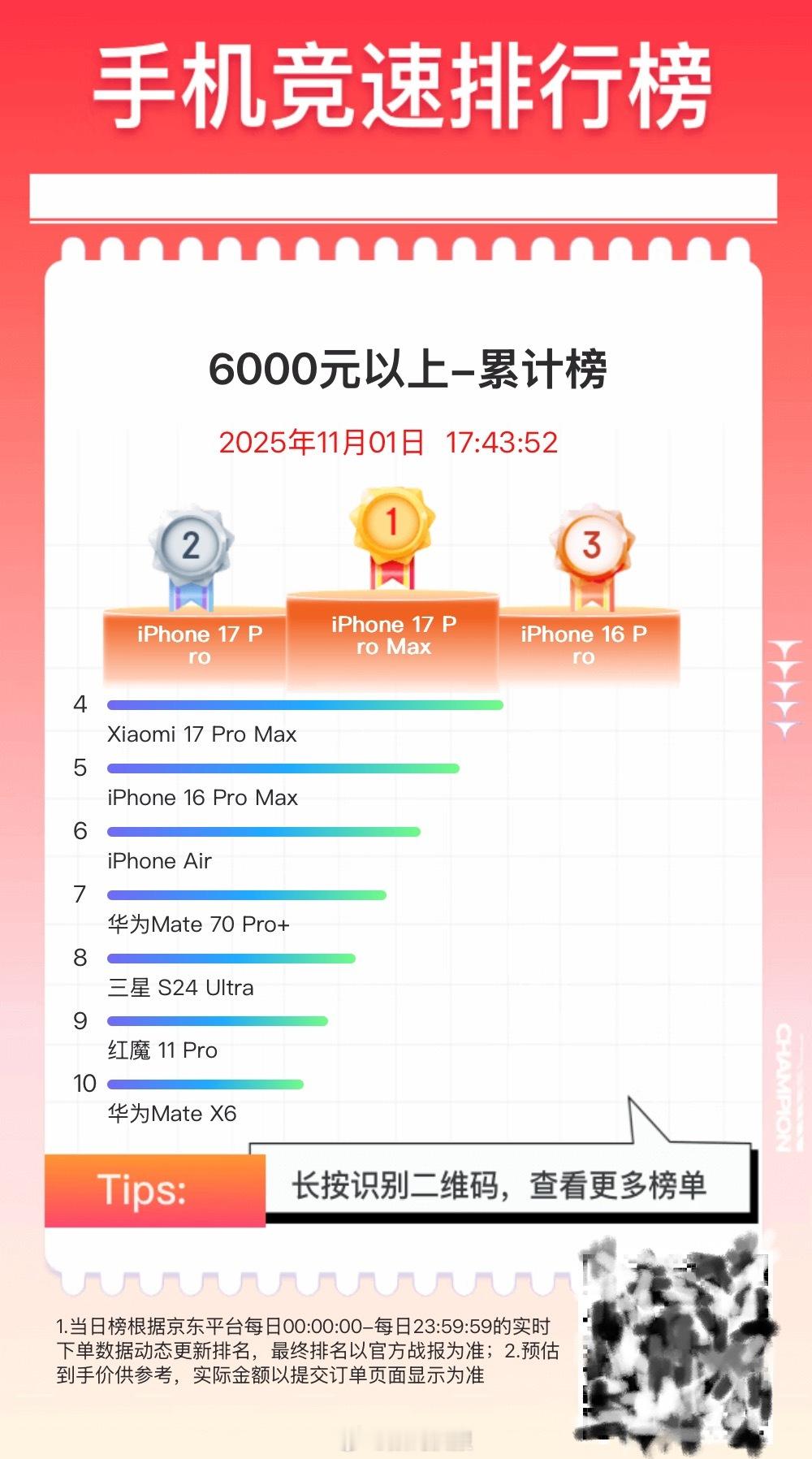 双十一半程苹果领跑小米紧随今年小米16改名小米17,同级对标iPhone 17大获成功,iPhone 17系列大卖,小米17同样大卖,能和iPhone 17系列正面挑战的新机,也只有小米了,6000元以上手机销量榜只有小米17 Pro Max一款国产手机进入top5!小米新增的Pro Max机型真的超出预期[good]