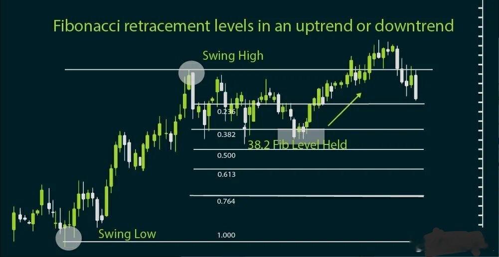 利用斐波那契回撤在趋势中寻找入场点。例如,在上升趋势中,价格回调至 38.2% 或 61.8% 可能是一个较好的买入机会。