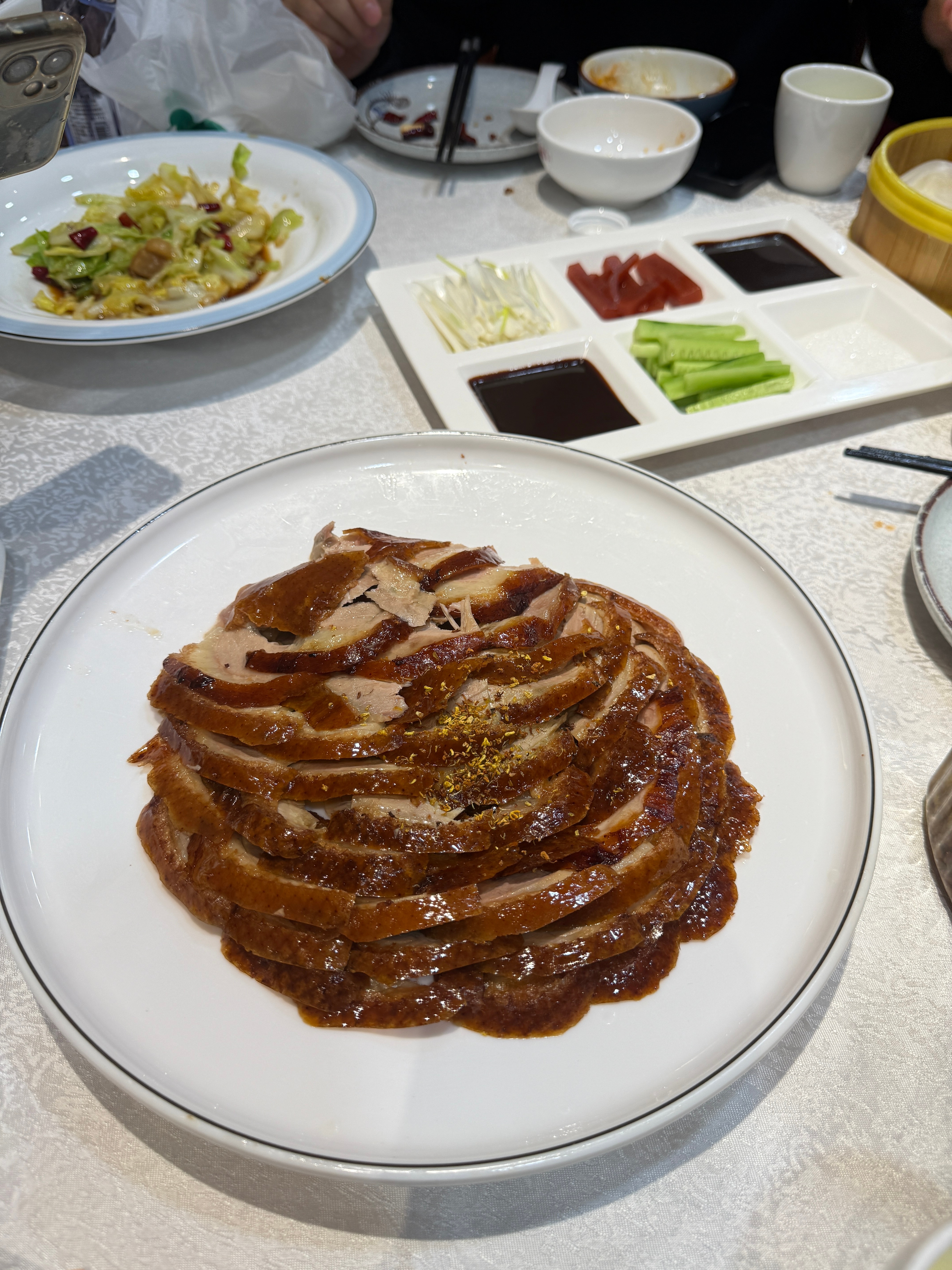 豆汁喝起来一股酸菜味,只要不去刻意的闻,喝下去还是可以的,就是这北马送的烤鸭没吃到又去其他店买了只烤鸭吃[偷笑],话说这次北马的福利还挺多,希望回家之前能把这烤鸭的券用了,期待明天从天安门跑过的兴奋感[打call] 北京马拉松