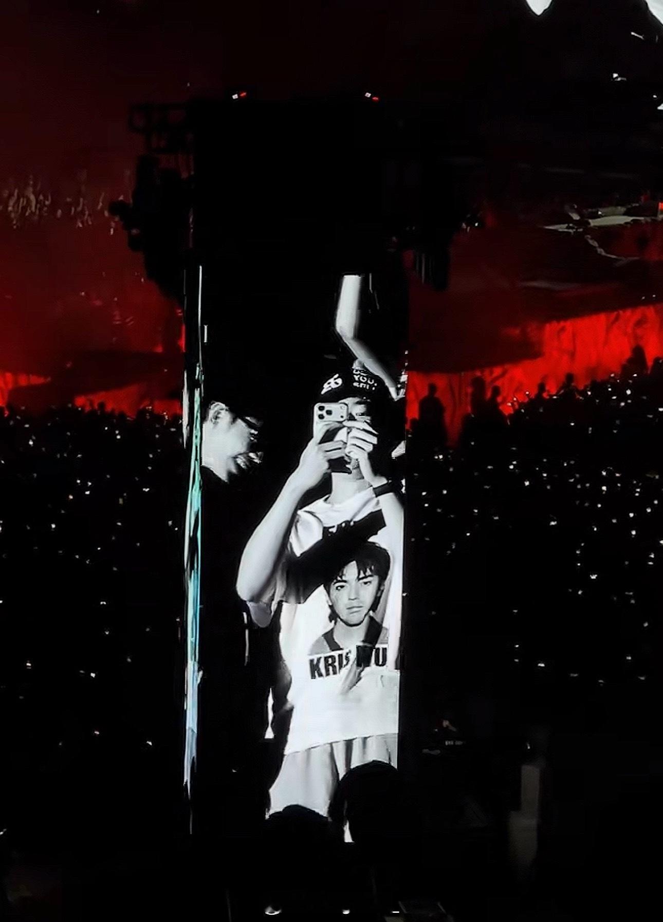 TravisScott今晚三亚演唱会,大屏幕镜头切到了粉丝穿的Kris!