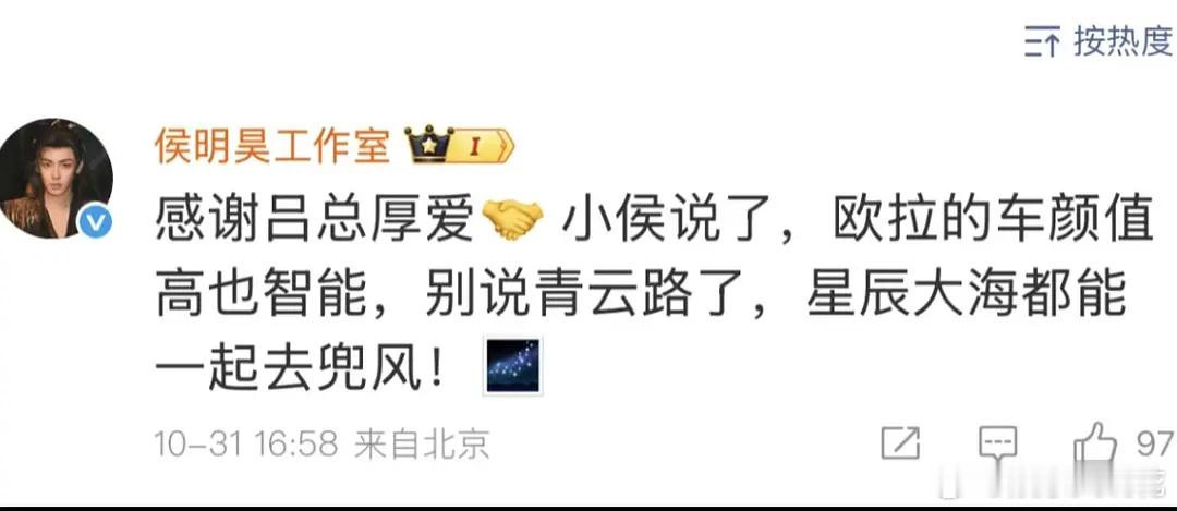 入青云确实有效播剧,侯明昊新增sw+1,新能源汽车,长城欧拉各种猫[酷]小猫哥代言小猫车,谁懂啊[点赞]