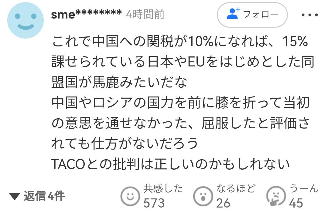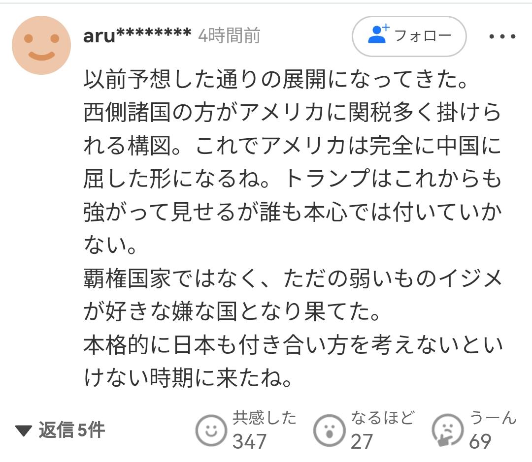 日本网民心态终于崩了!特朗普说G2的时候,印度人心态崩了。说对中国的化学品关税降至10%的时候,韩国人心态崩了。特朗普在返程的专机上说化学品关税可能会完全取消的报道流传开后,日本网民的心态终于崩了。 特朗普第二任期发起全面关税战,目前的成果是,英国关税10%,欧盟、日、韩关税15%,另外得到了大笔投资,欧盟6500亿美元,日本5500亿美元,韩国3500亿美元。而美国政府宣称目前对华关税是47%,实际上其第二任期对中国加的关税是20%,10%的化学品关税+10%的对等关税。如果化学品关税完全取消,那就只剩10%的对等关税。让日本网民崩溃的就在于,美日是关系延续了80年的亲密盟友,结果日本以5500亿美元的对美投资换来了加税15%,而中国啥都没做却可能只加10%。 有日本网民看的很清楚,中国能谈成这个协议,是我们既不缺反抗的实力,也不缺反抗的勇气。而日韩欧盟这些国家,本身实力上有所欠缺,还在安全问题上仰仗美国,所以面对美国的时候先天性的底气不足。至于盟友的身份,在利益面前一文不值。