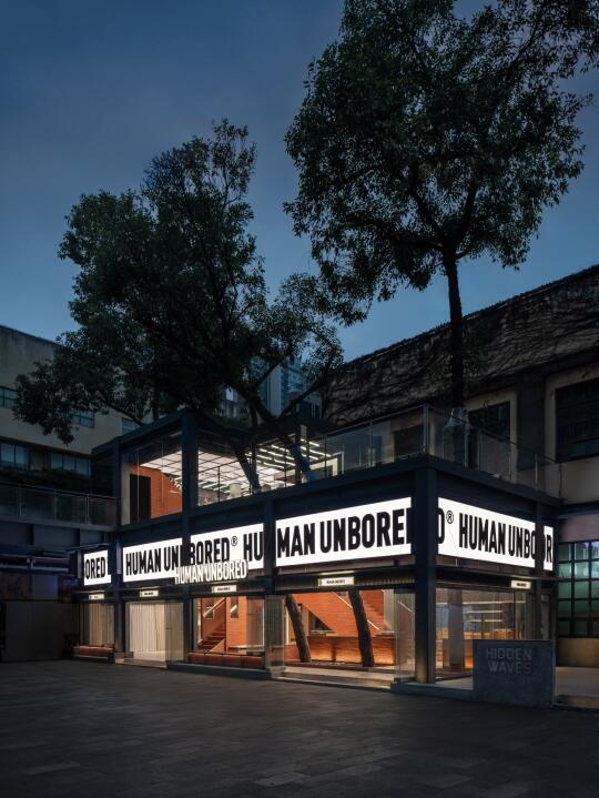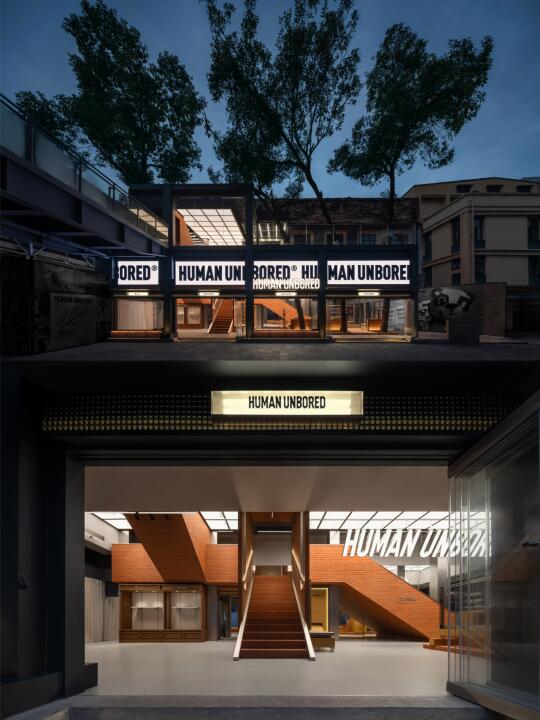 UNBORED 人类不无聊,其全国首店选址于成都市东郊记忆的超中心区域,场地分为两个不同的建筑场域——“潮流展览内场”东郊原有旧工业建筑和“三棵树潮流快闪平台”新搭建建筑体。