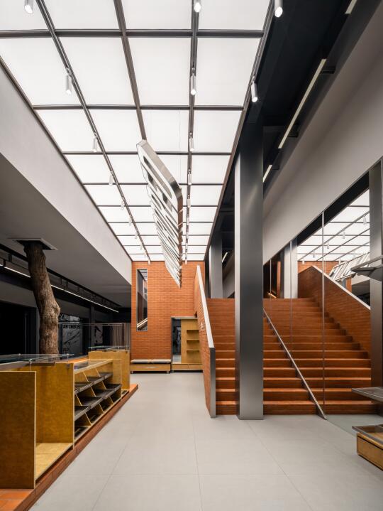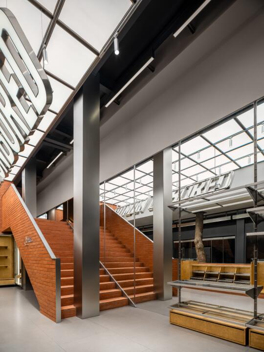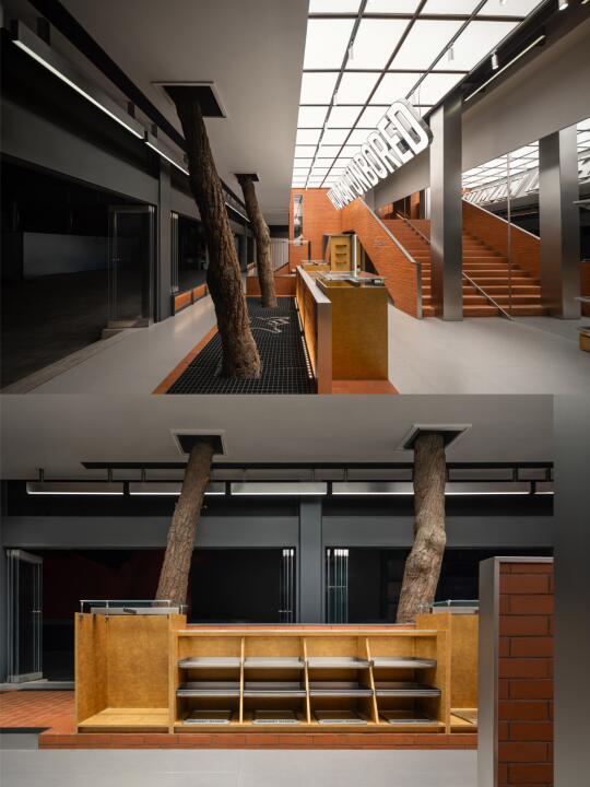 一座工厂新旧的场域链接,也是旧工业与新锐艺术的链接,其中的旧工业建筑限制因素,两块场域的零售布局和动线链接梳理都极具挑战。