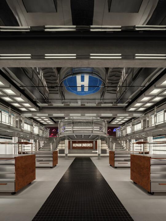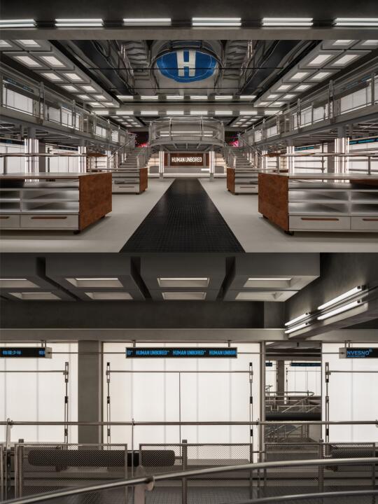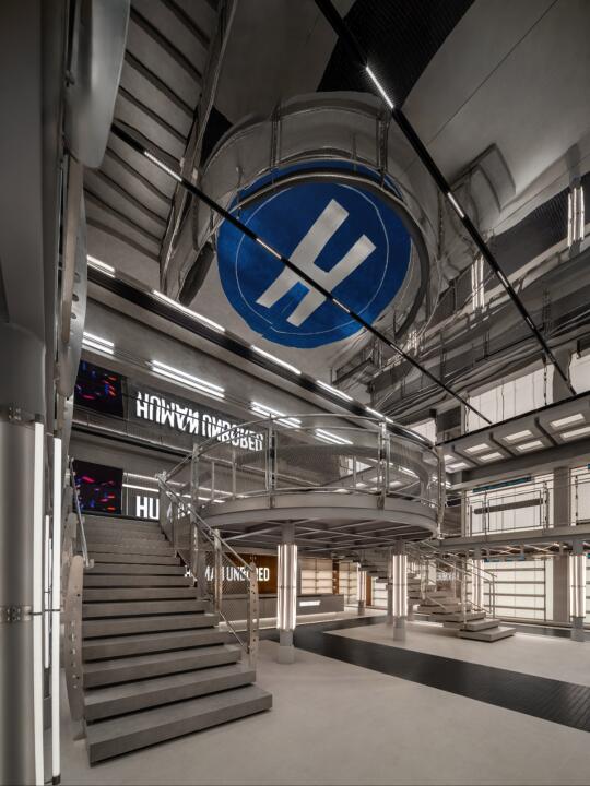 潮流展览内场:以人类创造出飞行器、第一次离开地表圈的伟大瞬间为灵感,让“空间起飞”,激发创造力;将“空间特质”与“品牌属性”兼容并蓄,创造出具有超现实探索性的店铺设计。