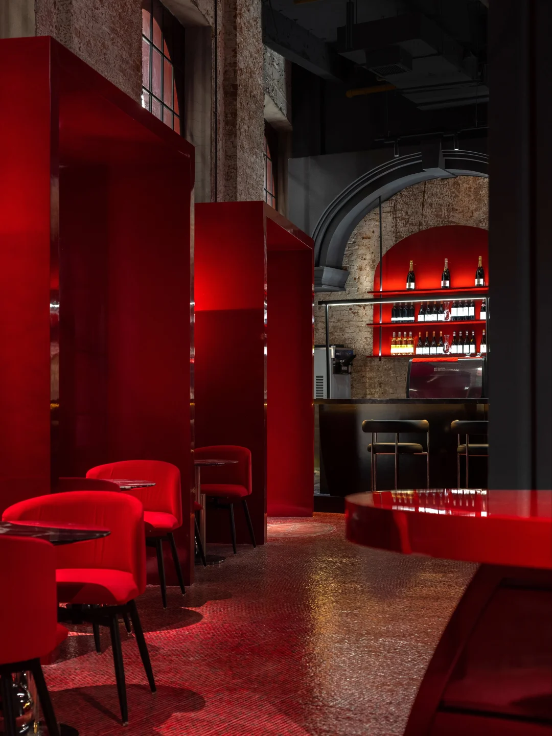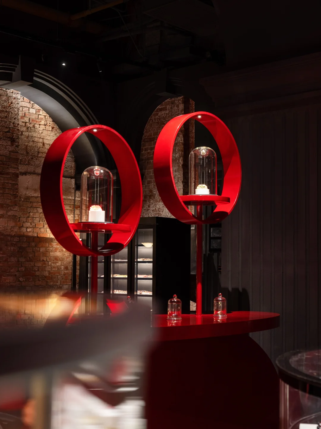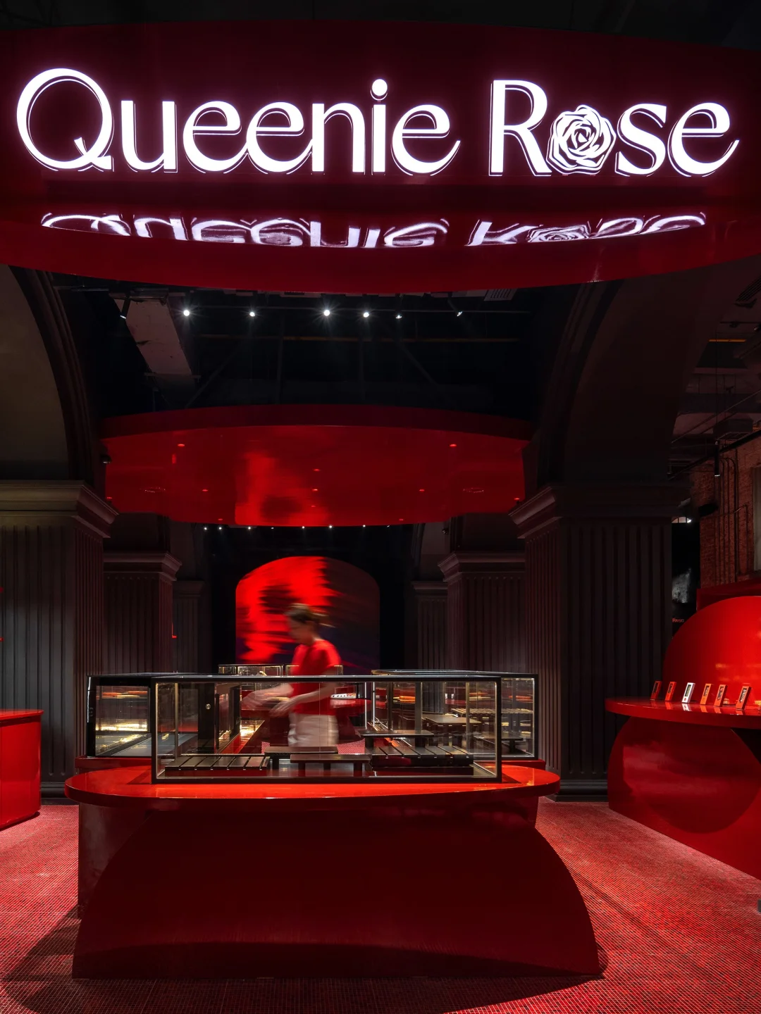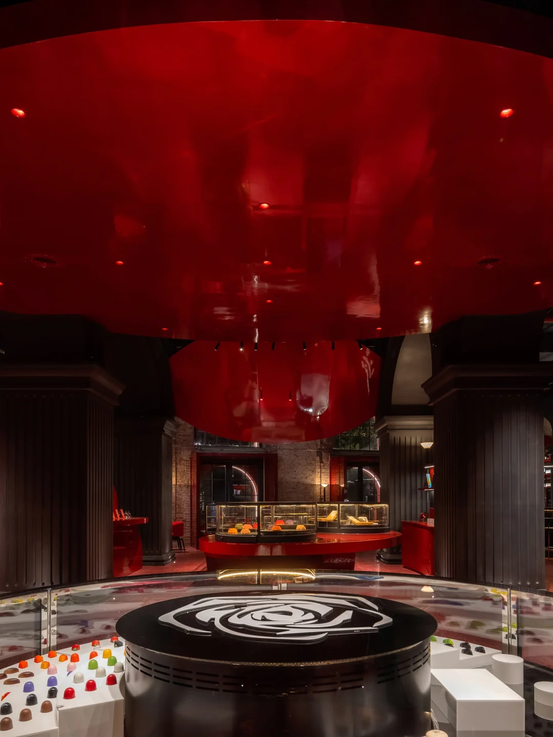勉强设计事务所受 Queenie Rose 委托,将其一层弧形空间改造成巧克力与餐酒综合体验场。