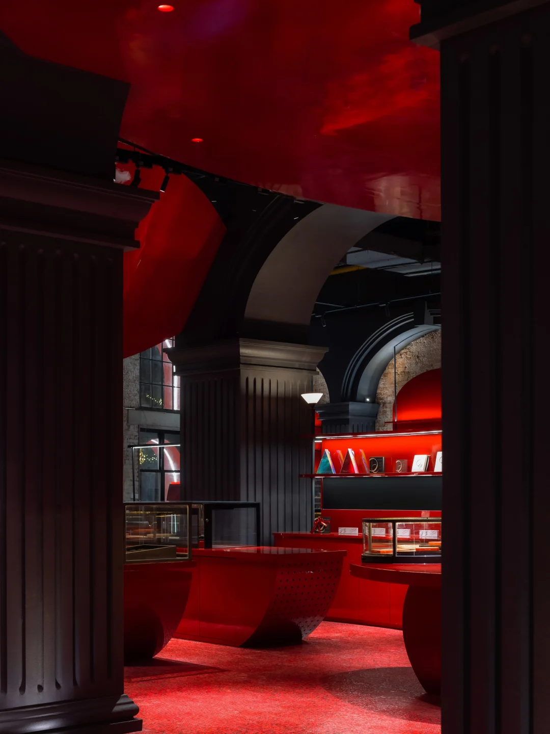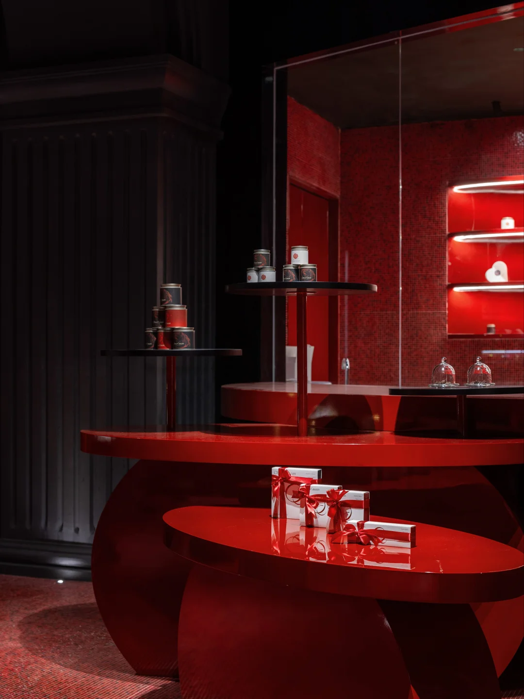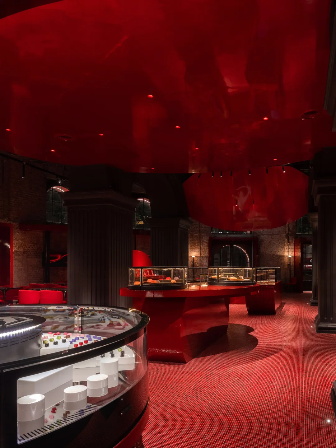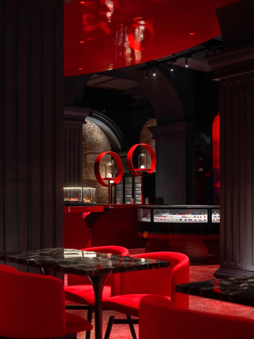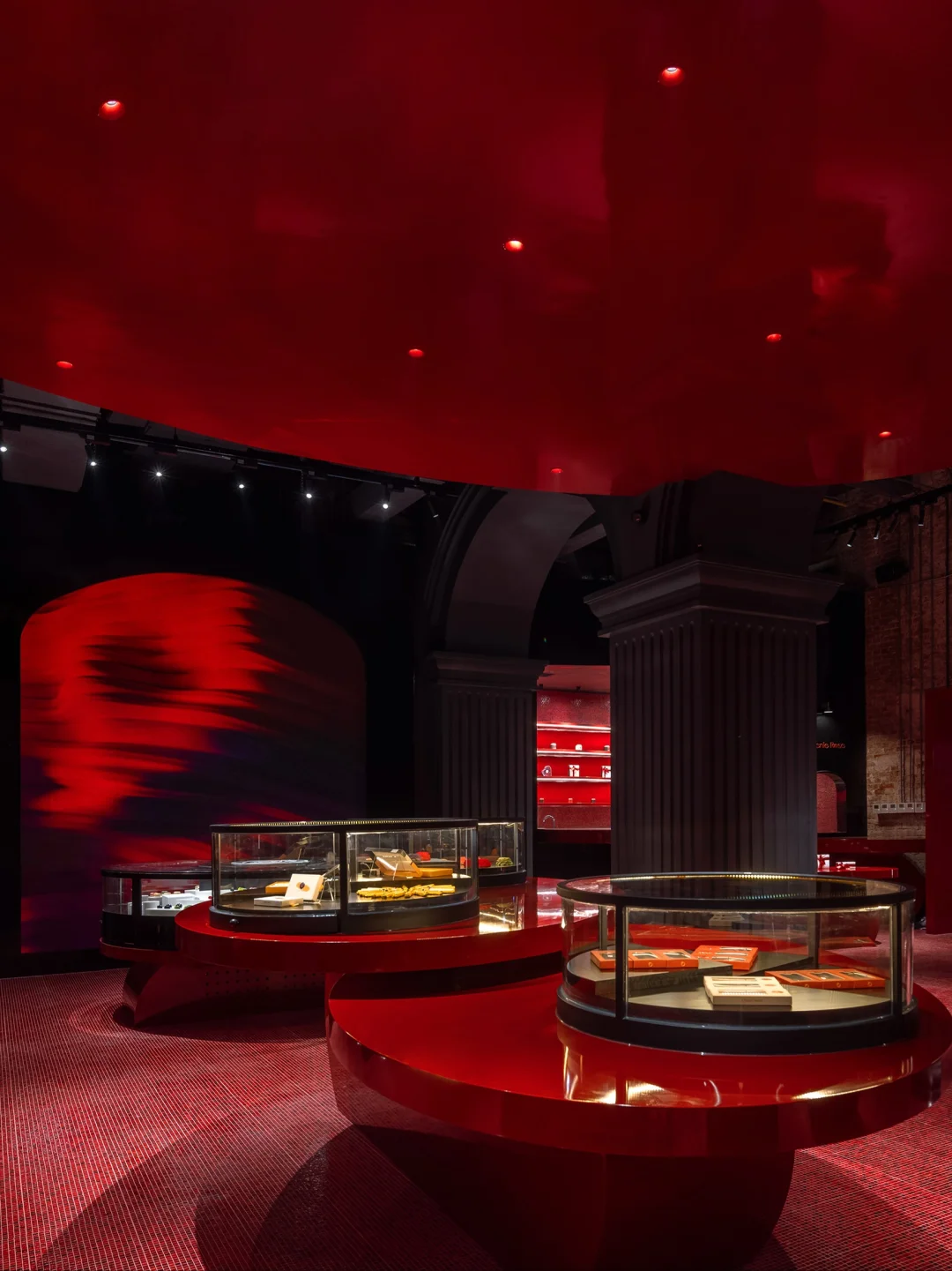 勉强设计事务所受 Queenie Rose 委托,将其一层弧形空间改造成巧克力与餐酒综合体验场。