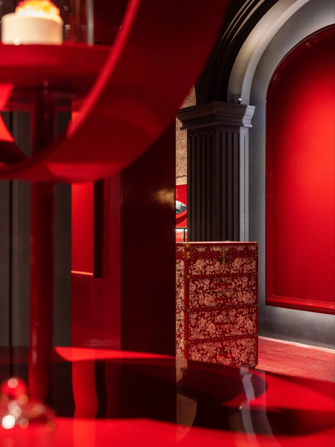 同时置入被放大的花瓣形态,进一步拉大了人与产品与空间的比例关系,让人置身其中如有身处戏剧舞会的感受。