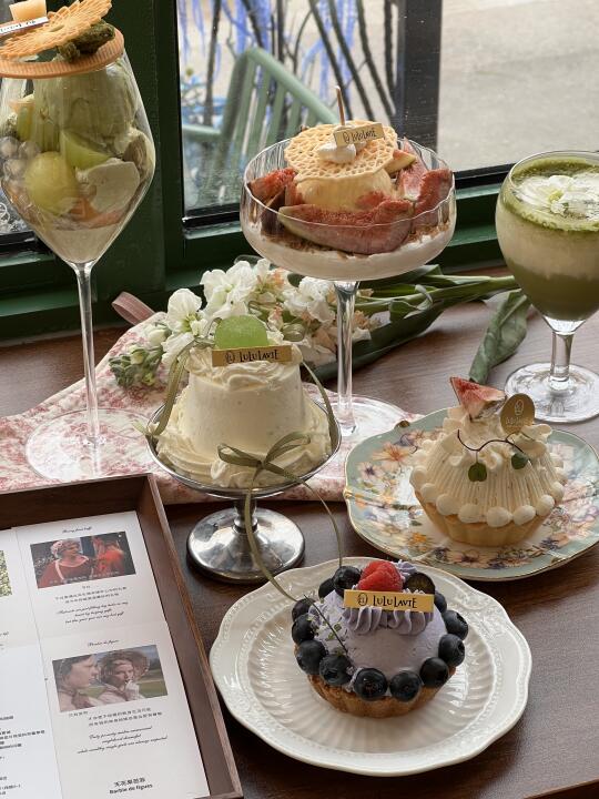 小阴天☁️来南市场二刷无花果芭菲了 🍈蜜瓜芭菲也很好吃૮꒰ ˃̵͈᷄ ˂̵͈᷅ ꒱ა!! 蓝莓榛子派🫐&无花果酸奶塔🥧&桃喜果冻塔🍑