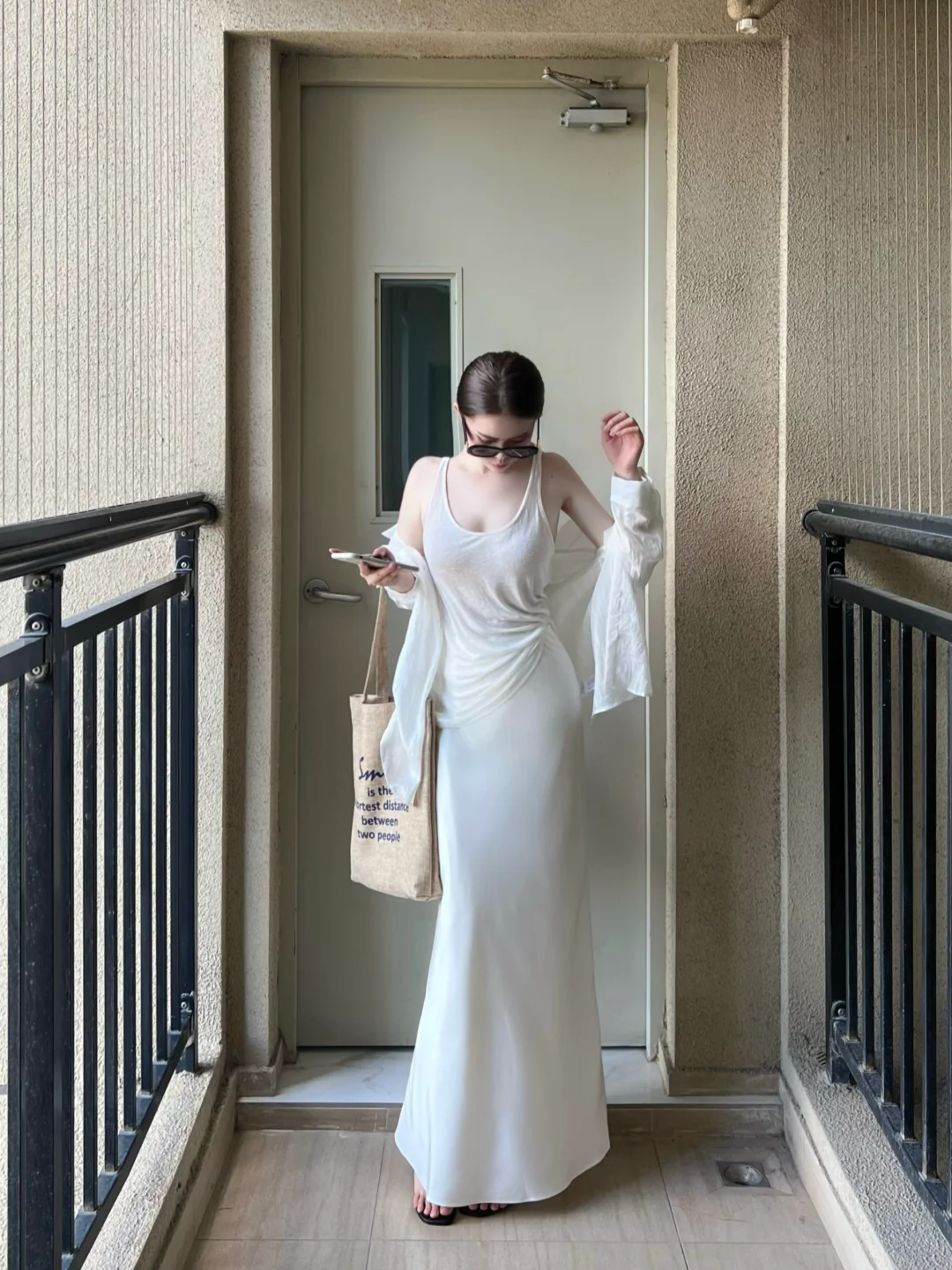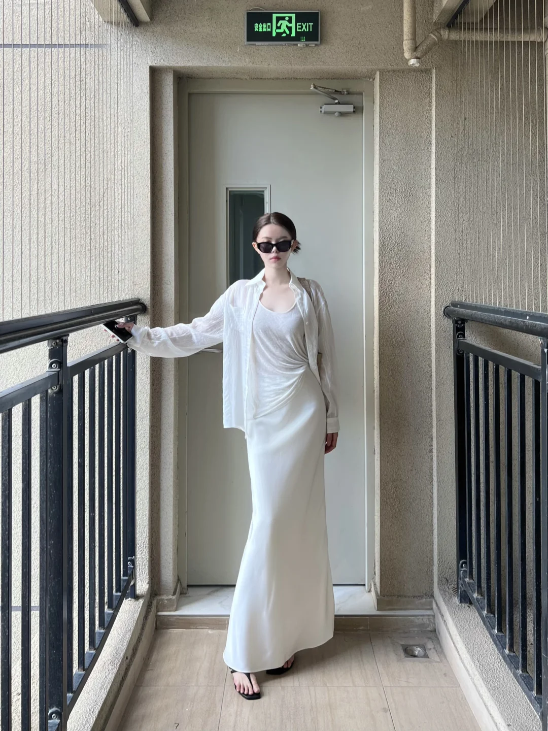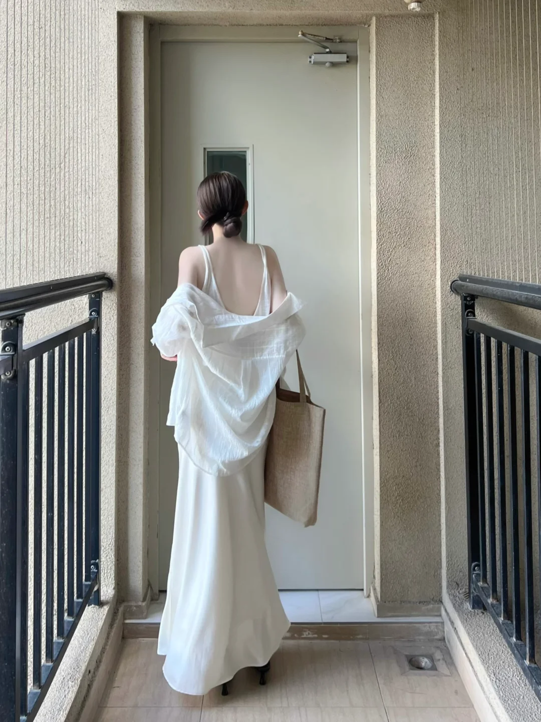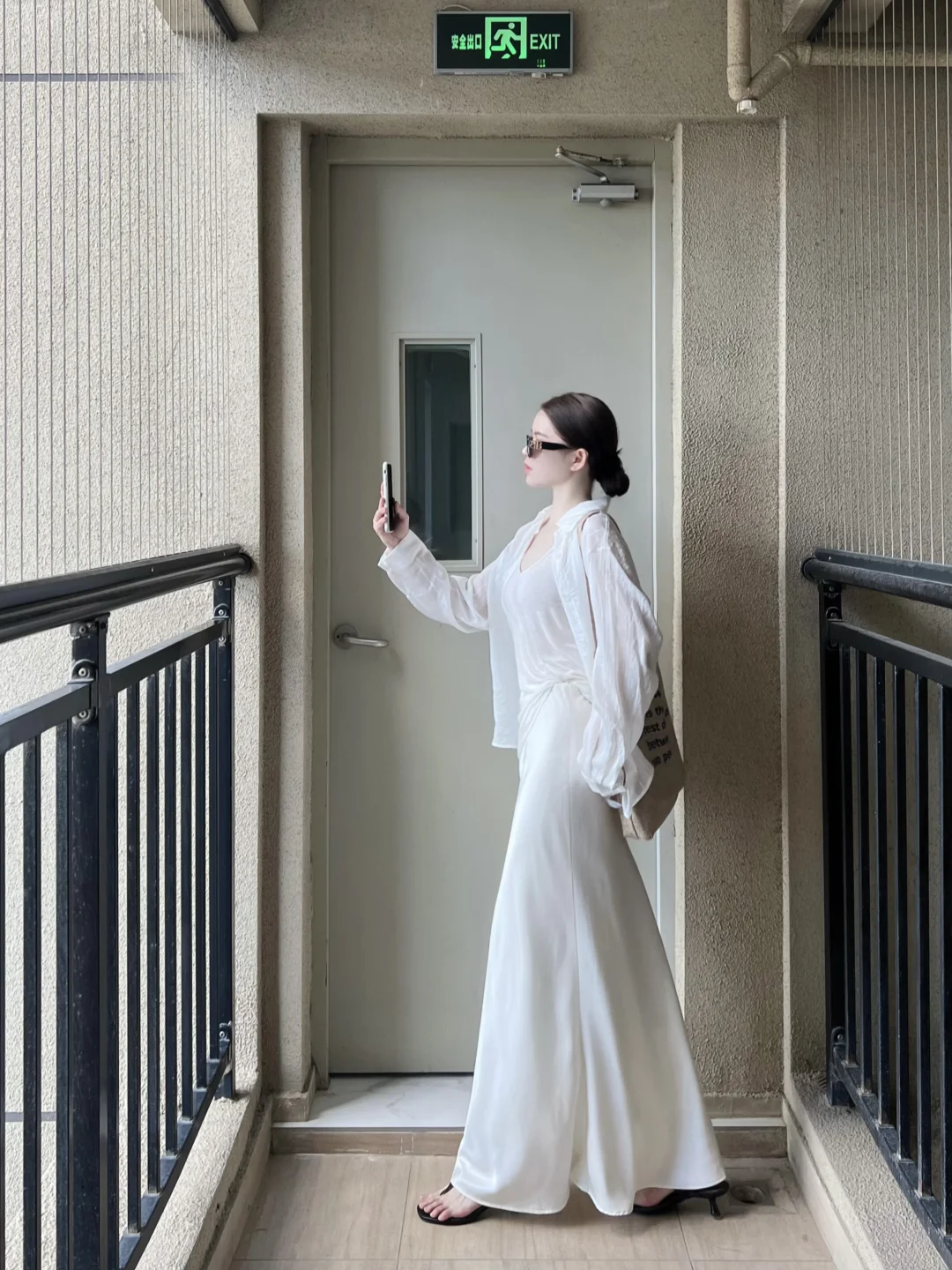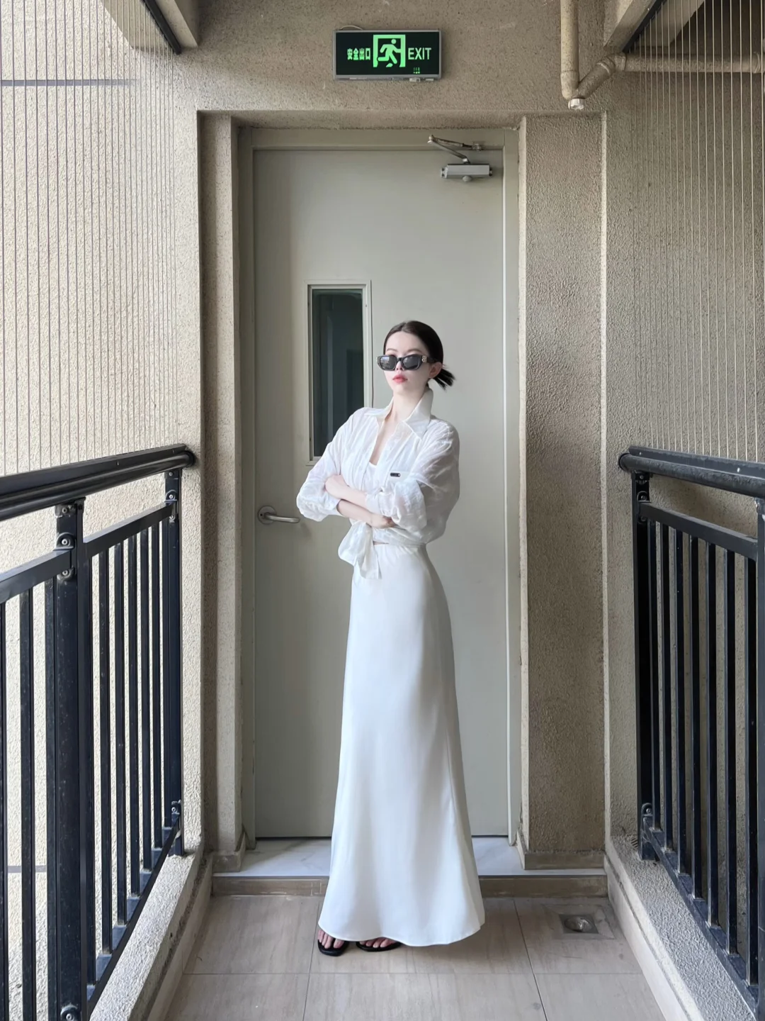 慵懒感穿搭 早秋穿搭 老钱风穿搭 白色系 衬衫 缎面裙 通勤穿搭 一周穿搭不重样