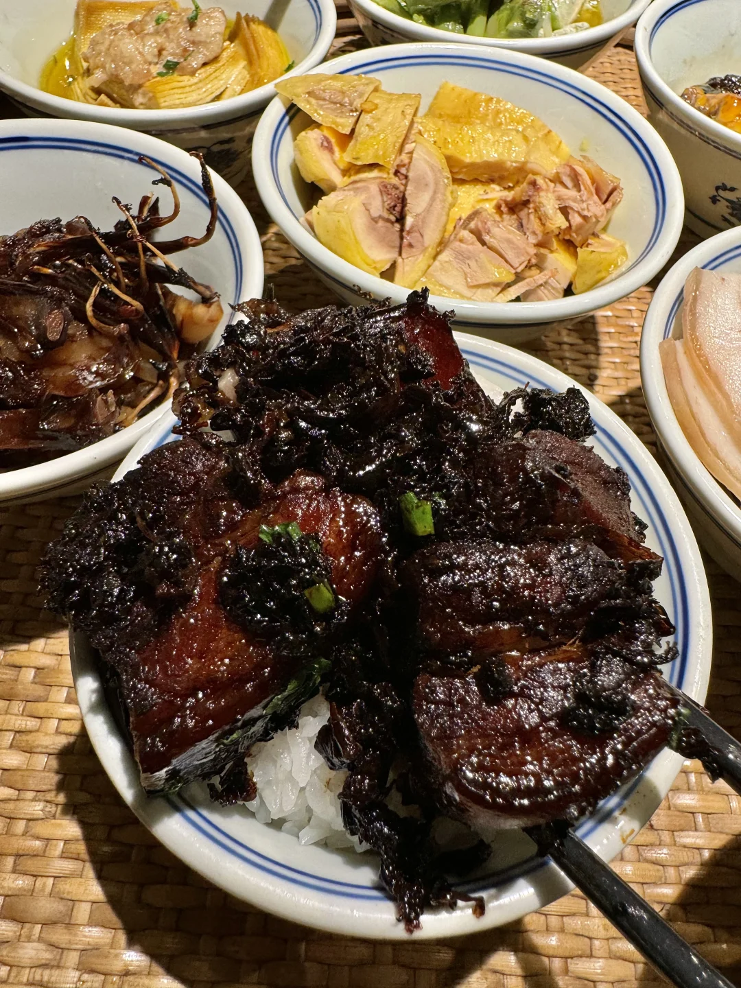 谁懂这十碗头的含金量!!!霉千张、蒸双臭、绍三鲜、生醉蟹…种类丰富,吃不厌的那种! 醉虾!上桌后现醉,带着淡淡酒香味! 梅干菜扣肉!肥而不腻,妥妥的下饭菜~