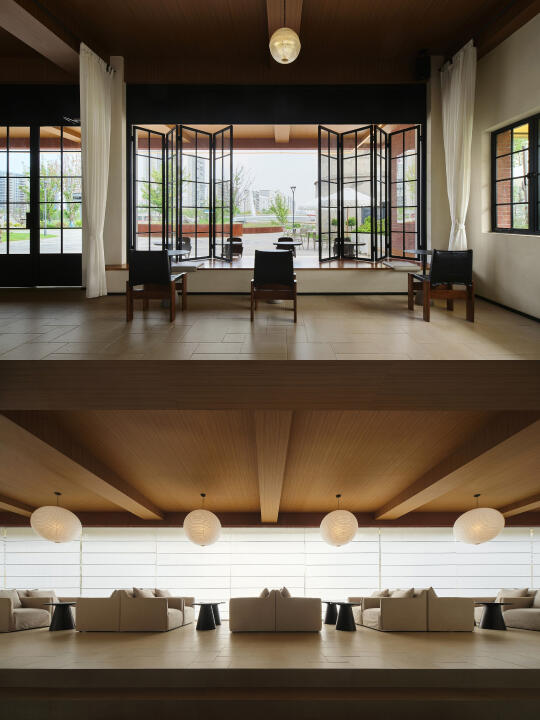 设计团队将一座老水泥厂保留下的体量与肌理,转译为面向现代生活的复合型咖啡空间。红砖拱廊、法式落地窗、裸露的结构与温润的木饰面,让整座空间在粗粝与柔和之间达成了平衡。