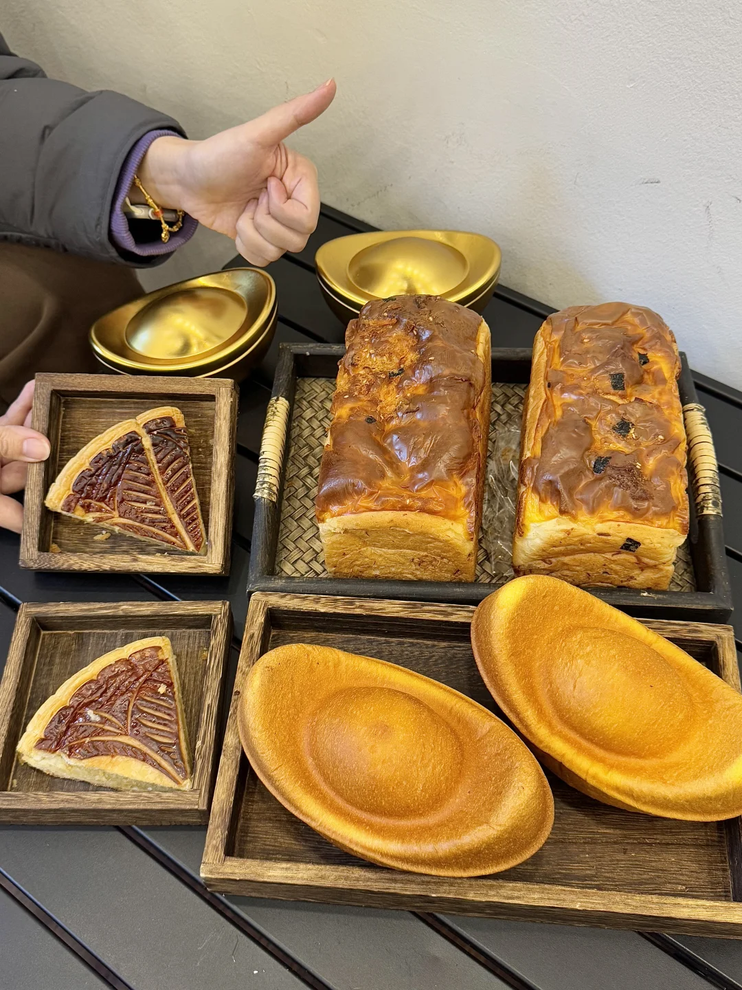唯一让我念念不忘的小店!每次去都要打包一大袋子! 富贵金元宝~咬开后松软香甜的内陷好好吃🤤猪肉脯吐司🍞口感松软但干爽不油腻!肉松有嚼劲! 国王饼!表面焦糖的外皮,咬开是馥香甜的馅料,吃起来还有层层分明的黄油香气!