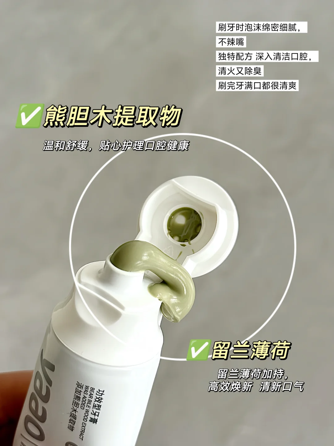 我牙龈一直敏感,以前刷牙总出血,这款含熊胆木成分,0酒精0蔗糖配方,刷起来软软的不刺激。