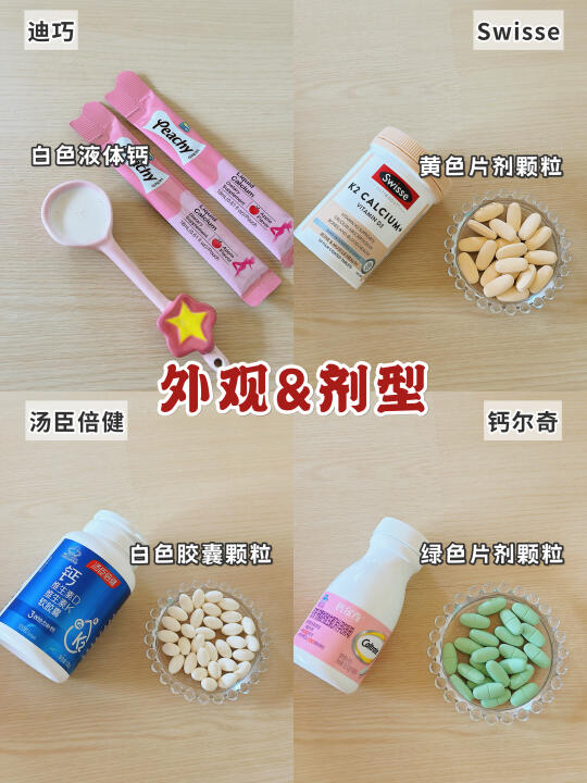 市面上常见的是:片剂。除此之外还有胶囊钙,液体钙。