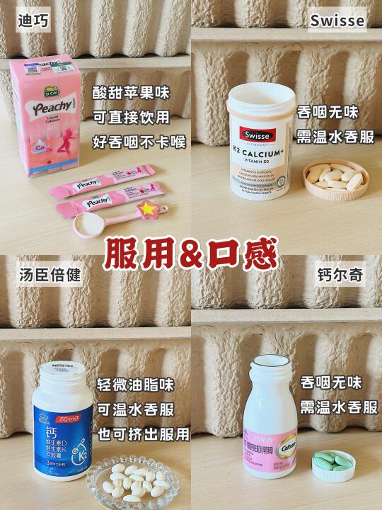 片剂钙片颗粒大,需要吞服,一天得吃多片,会刮喉咙,咀嚼吞服略粉末状石灰口感,加重孕反