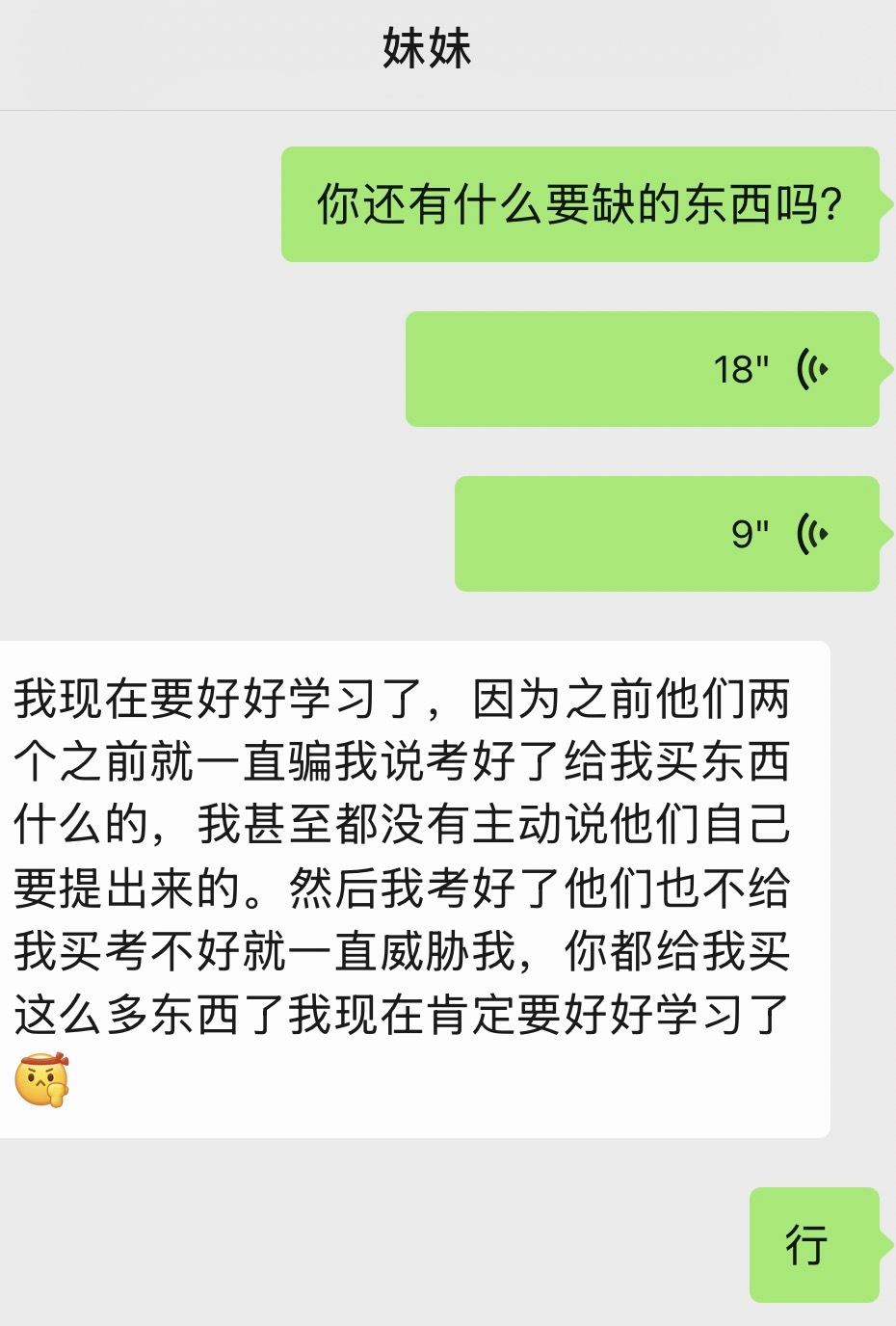还是感到很欣慰。 我妹妹 在我暑期天天撕逼吵架非常严厉教育下。两个月时间里。 从倒数进步了一百多名。老师都惊呆了打电话。 期待她全校前十 前五的时刻。 我会送礼物的。 [么么哒]