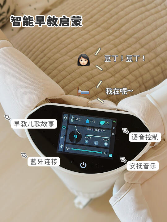 内置敲多模式,儿歌🎵,可以直接语音声控,简直就是哄娃小助手呀💤
