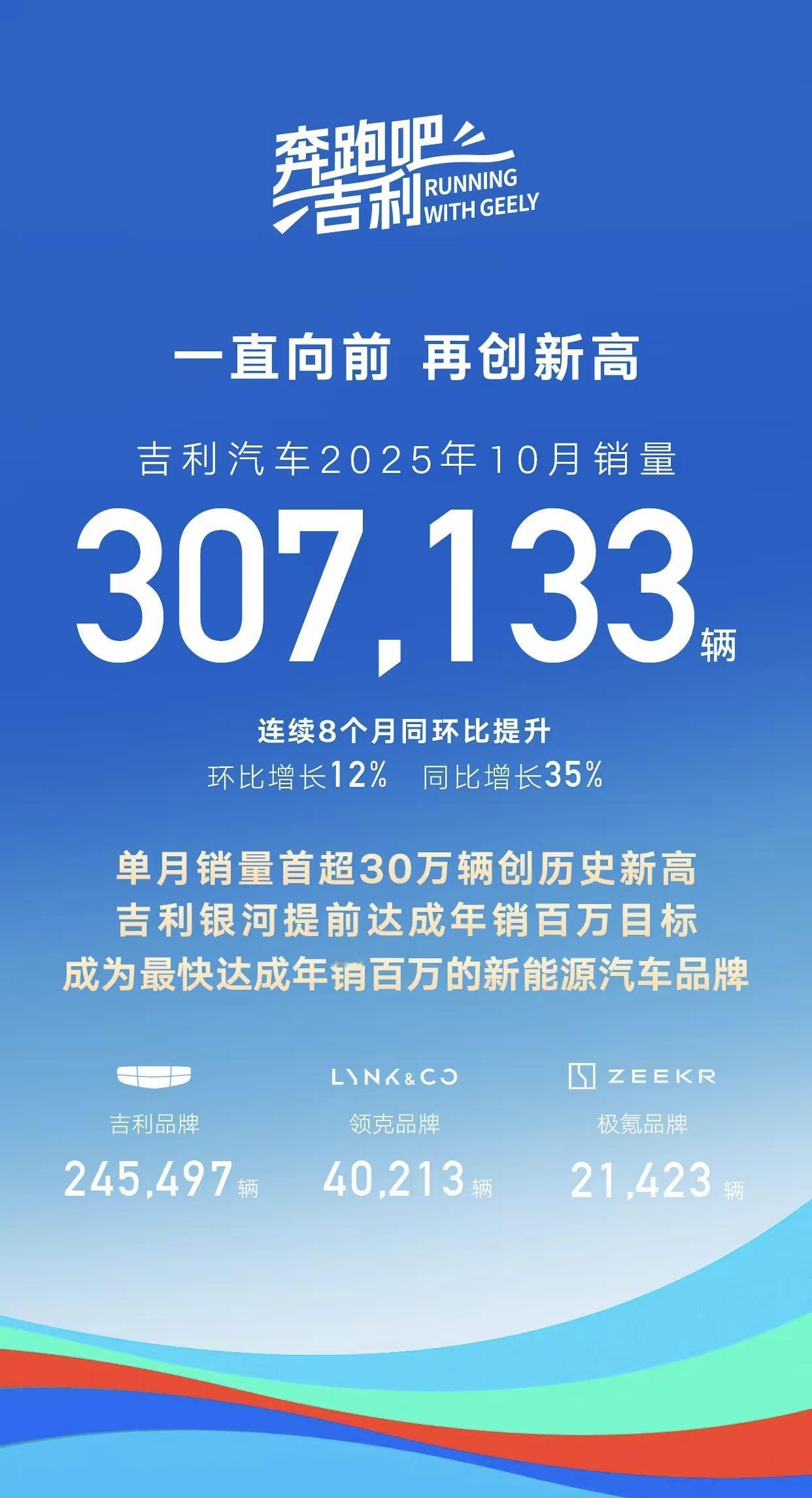 政策+爆款双驱动!红旗吉利奇瑞等自主品牌10月销量集体冲高,国产品牌好像都崛起了! 2025年10月自主品牌迎来销量狂欢,红旗、吉利等头部品牌全线创新高,核心源于政策红利与产品力升级的双重爆发。 头部品牌爆款频出成关键:吉利单月销量突破30.7万辆,银河系列提前达成百万年销,星愿上市16天交付破万;红旗销量超4.5万辆,新能源增速达66.3%,HS6 PHEV等车型借场景营销圈粉 ;奇瑞艾瑞泽8等车型跻身销量前二十,燃油车与新能源双线发力。 新能源渗透率逼近60%,自主品牌凭智能网联与三电技术优势,在“金九银十”旺季实现全域突破。