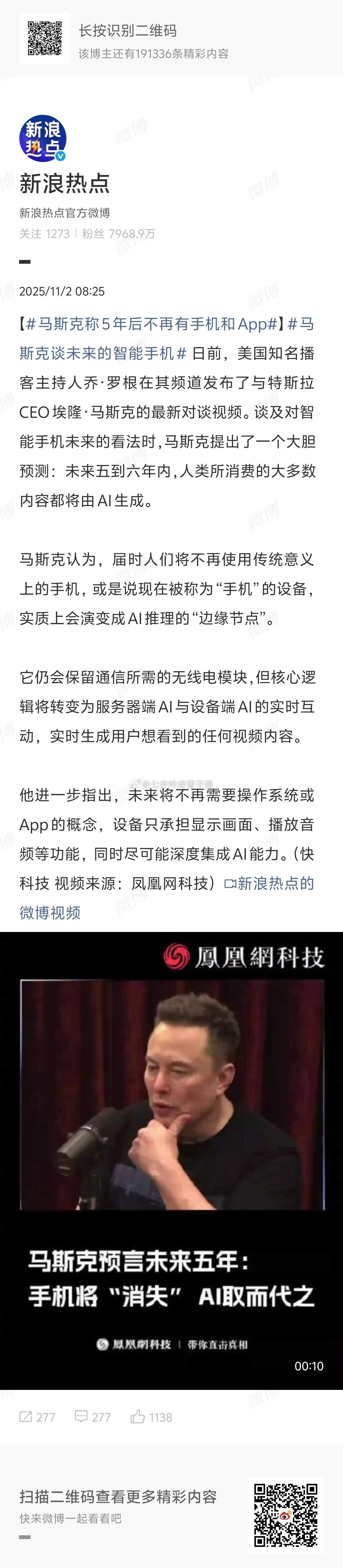 马斯克称5年后不再有手机和App你上火星了吗[yeah][yeah][yeah]