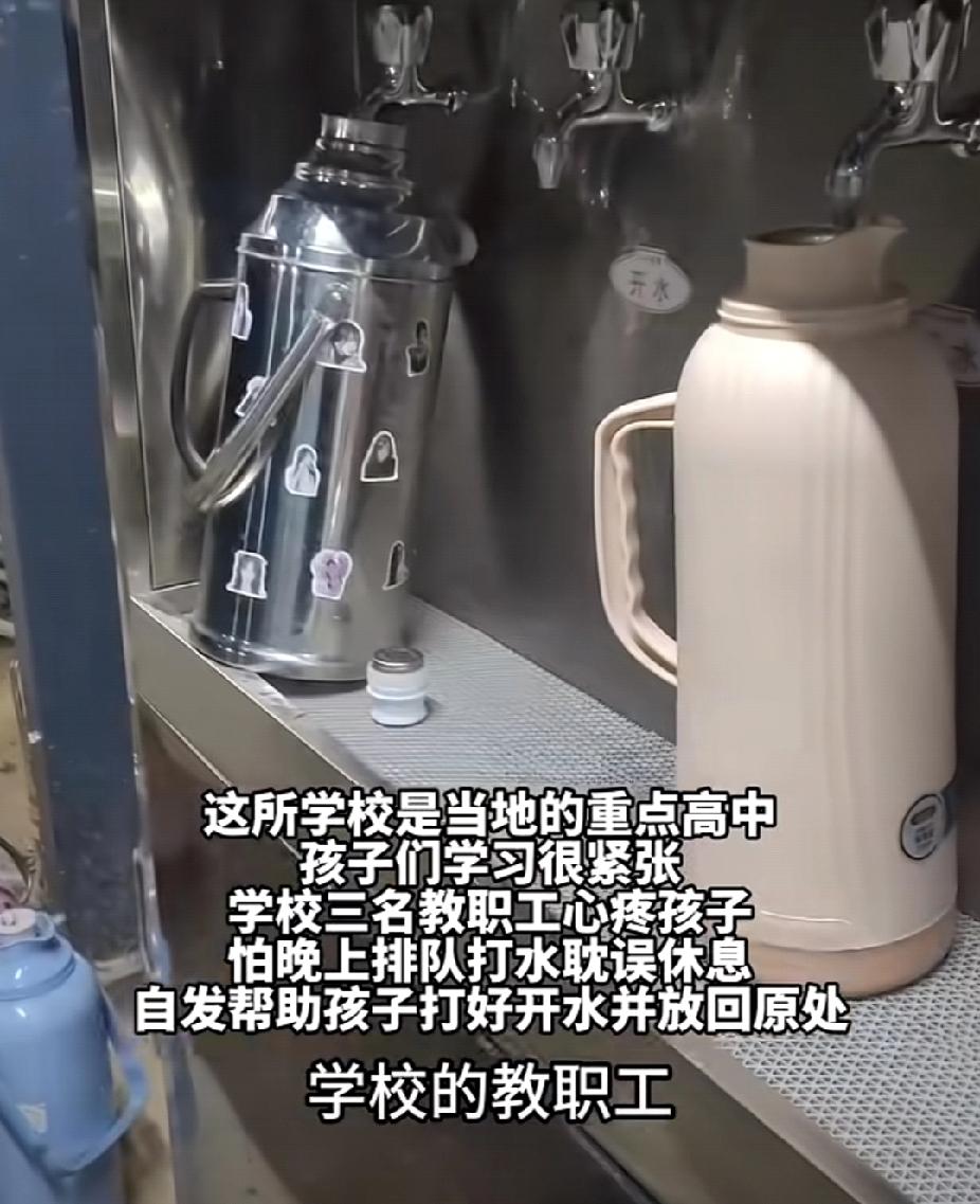 男子夜访学校目睹暖心一幕!11月1日晚,河南周口的王先生去学校看孩子,发现学校的教职工忙忙碌碌给孩子们接热水。 路边上放着密密麻麻的水壶,数不清究竟有多少个。几个教职工忙忙碌碌,来来回回地跑着,把水壶一个个打满后再放回原处。 那时已经是深夜,学生们早就已经熄灯睡觉。他们不知道,有人在默默守护着他们的休息时间,只为能让他们多睡一小会儿。 师生之间的感情是无法言说的,他们白天严格要求学生,或许有些凶巴巴,让学生看到就老老实实。到了晚上就化身成为温暖的天使,默默地付出着自己的时间和爱心!