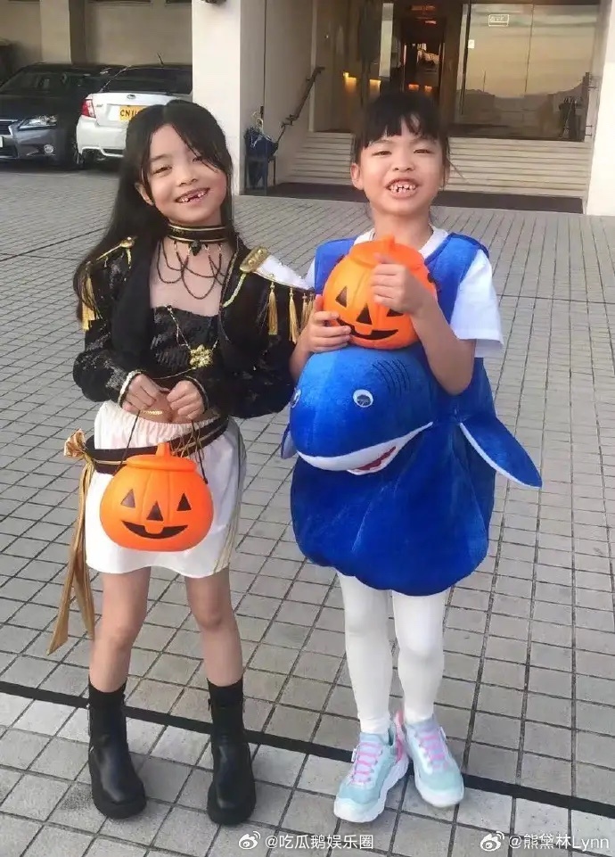 熊黛林晒万圣节照,辣妈cos猫女又辣又美,双胞胎女儿越长越不像!