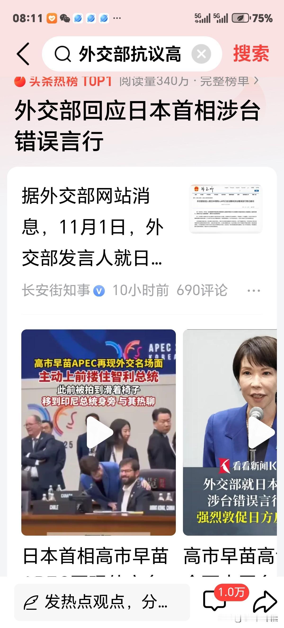 日本首相涉台错误言行!并不感到意外,相由心生笔者早就说过,日本政坛根就腐烂了,把高市早苗推上前台,其主要目的是充分发挥女性先天强项,温柔婉约,当然高市早苗不具备端庄大方。来于外界交往,但对华态度依旧无理取闹,故而拿台湾省说事,当筹码!其属意料之中! 咱来回顾一下,高市早苗上任后这十天行为,就知道了我的判断了。首先跪舔特朗普,淋漓尽致诠释了柔媚和顺含义,满脸谄媚笑,还一门往老特头怀里靠,展示65岁中年妇女小乌依人魅力!接着又毫无征兆贴近印尼总统身边,促使苏比安托捂住鼻子不敢自由呼息!随后又上前搂住智利总统,弄的博里奇一脸懵逼。高市早苗一国首相如此骚操作,不仅博里奇蒙头转向,整个地球人都找不到北,惊掉下巴! 而对咱是什么意思呢?看其行呗!本月26日高市早苗在马来西亚见了菲律宾总统马科斯,还弄出个协议,一致同意加强安保合作等等吧!总之没按好心。今天这则消息,高市早苗又口出狂言,打台湾牌,由此足以证明日本政客们,对中国崛起是多么忌惮?和难以接受?咋办呢?捣乱,失败,再捣乱再失败,最后灭亡呗。