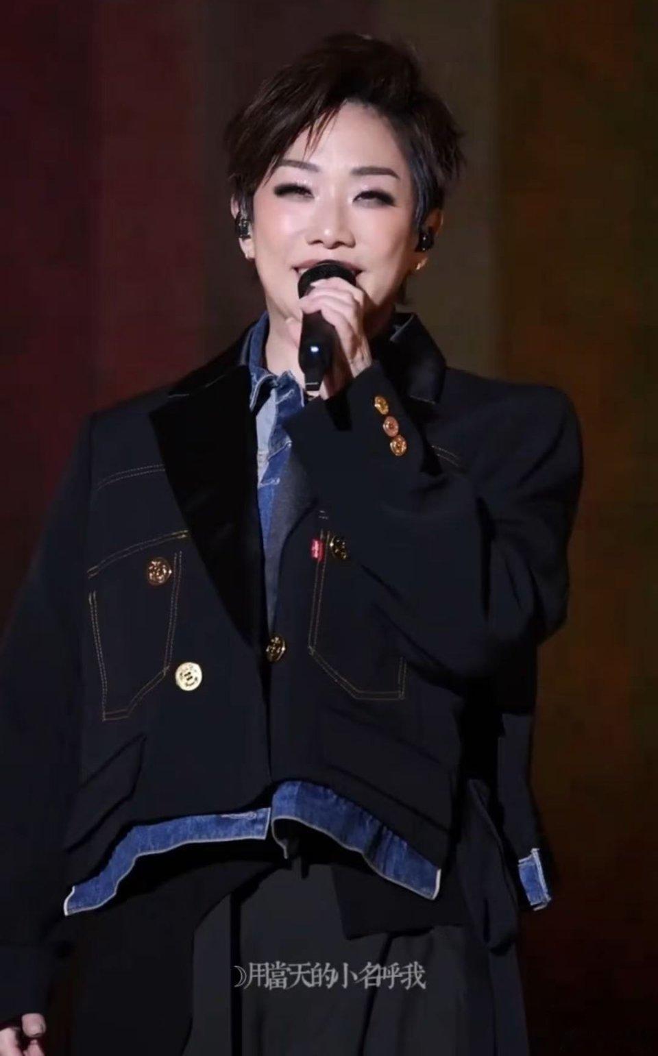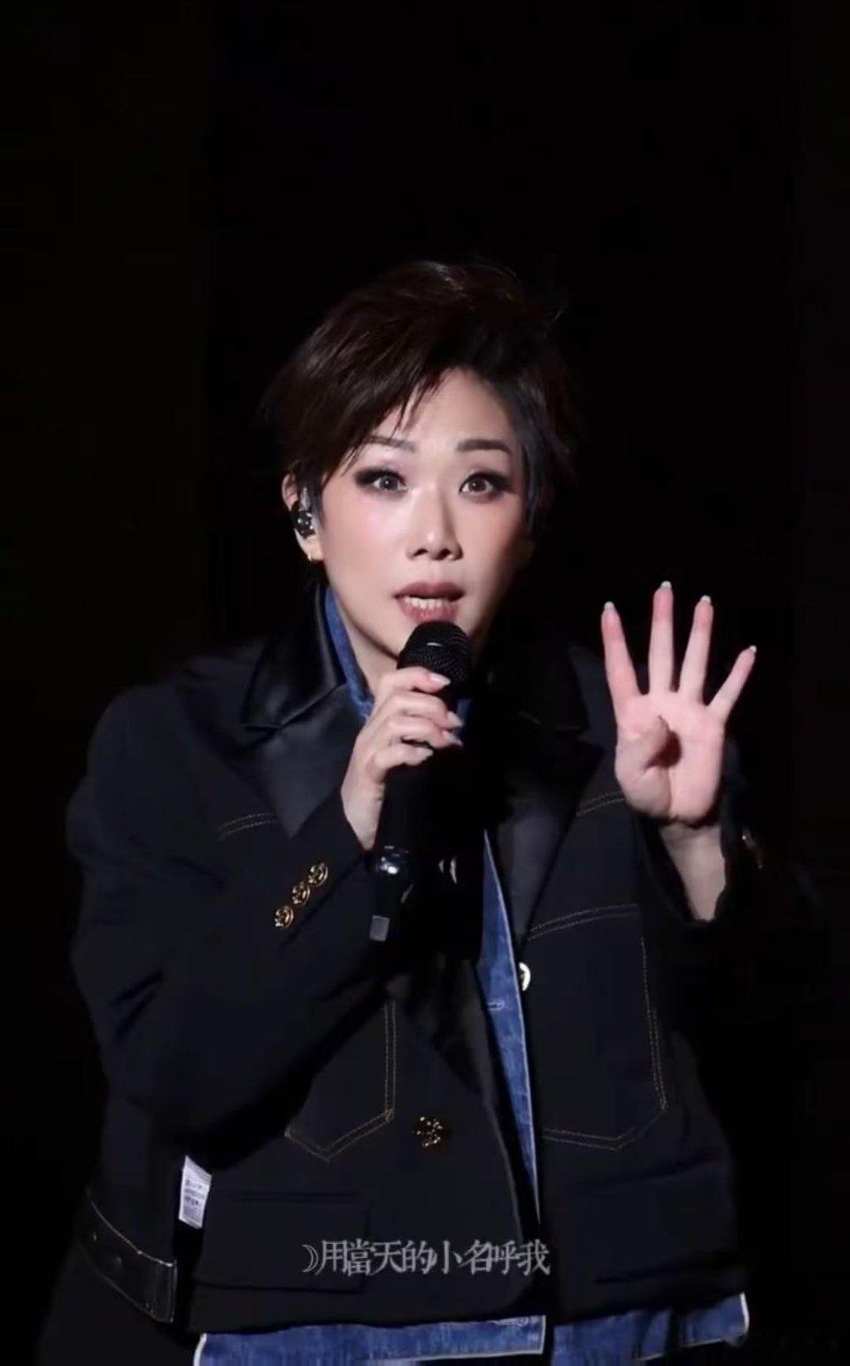 林忆莲舞台上的可爱动作 林忆莲在舞台上唱歌的时候,真是把我拿捏住了,明明是气场全开的歌手,却突然对着台下托脸微笑,那种反差感直接让人招架不住,心都要化了。