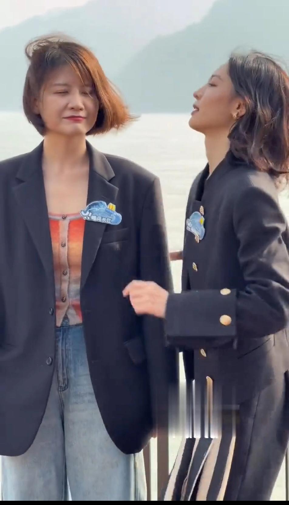 钟楚曦是真的低调了,衣服低调了,神态也低调了,这次的服装可算是她近年来最朴素的一次了吧,就一身黑色西装,礼服都没穿,发型也没做,和身旁的编剧差不多一个风格,完全不像个女明星,脸上再也不是“老娘天下最美”的神情,就俩人拍照,钟楚曦还急急慌慌的换位置,可能发现自己更靠中间吧,看来Vouge盛典抢C位的事情真给她留下阴影了,变了一个人似的……